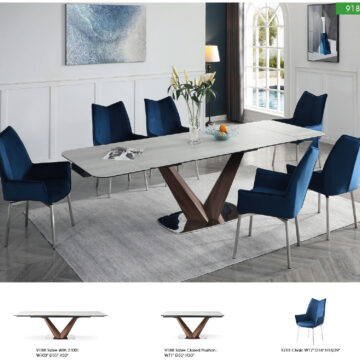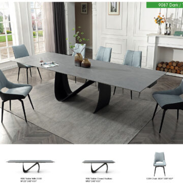 9113 Dining Table with 1218 swivel grey taupe chairs