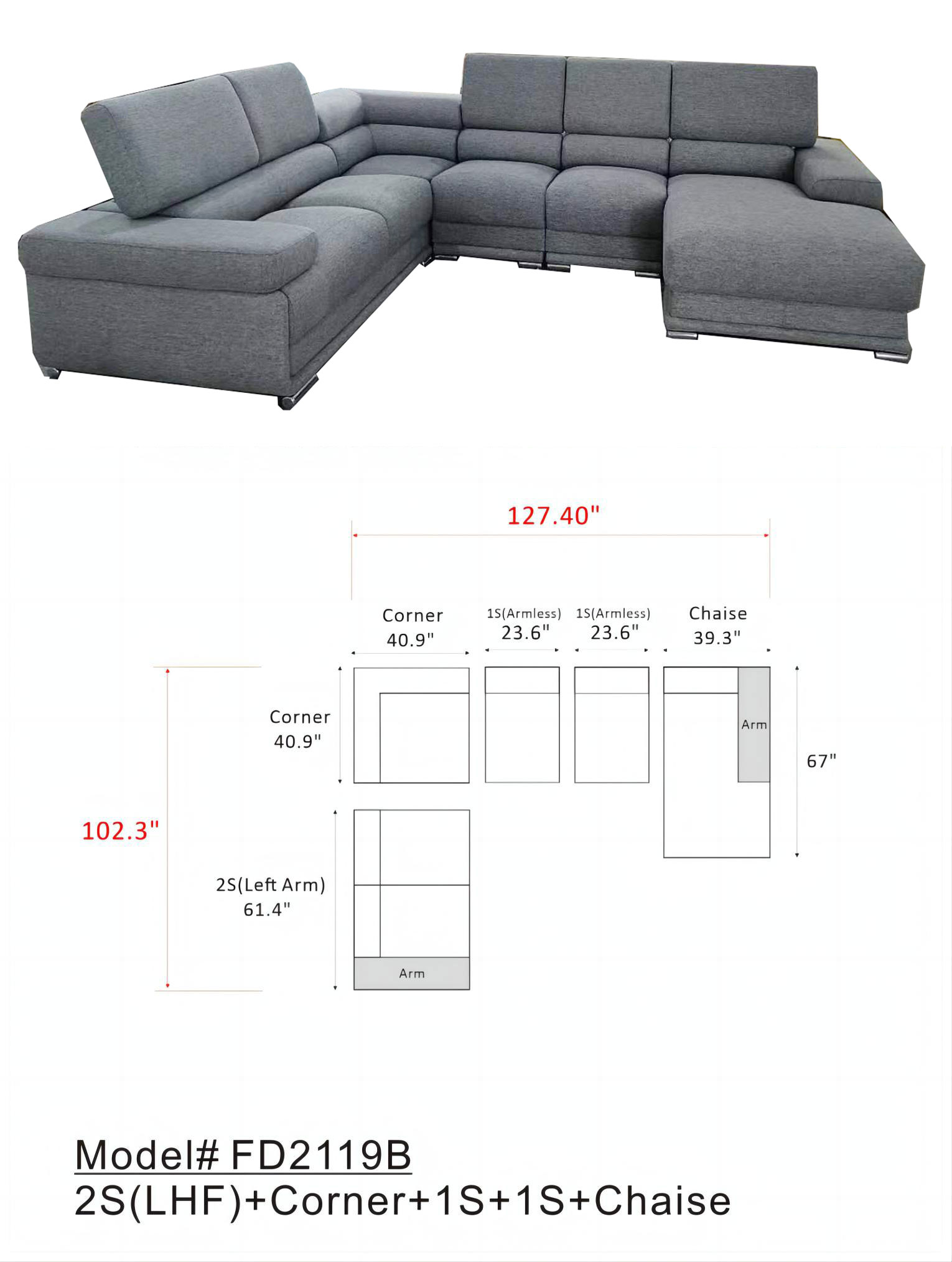 Experience unparalleled comfort with five adjustable headrests, allowing you to customize your lounging experience to your exact preference. The sleek silhouette and sophisticated fabric upholstery make it a versatile choice for any modern home. For those seeking a unique touch, special order materials are available to perfectly match your personal style and decor needs.