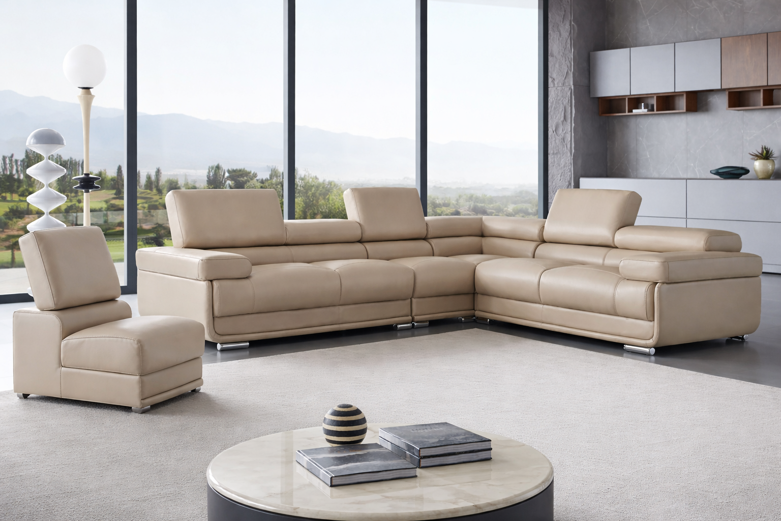 Elevate your home with the 2119 Sectional with Extra Chair – Beige, a masterpiece from the Extravaganza Collection by ESF. This sophisticated Sectional represents the pinnacle of modern Living Room Furniture, blending artistic flair with practical versatility. Crafted with a premium top-grain leather front and a durable eco-leather back, the piece is supported by a sturdy frame of wood veneer and MDF. Its sleek silhouette and neutral beige tone ensure it becomes the focal point of any contemporary interior, offering a refined aesthetic that is both inviting and avant-garde.