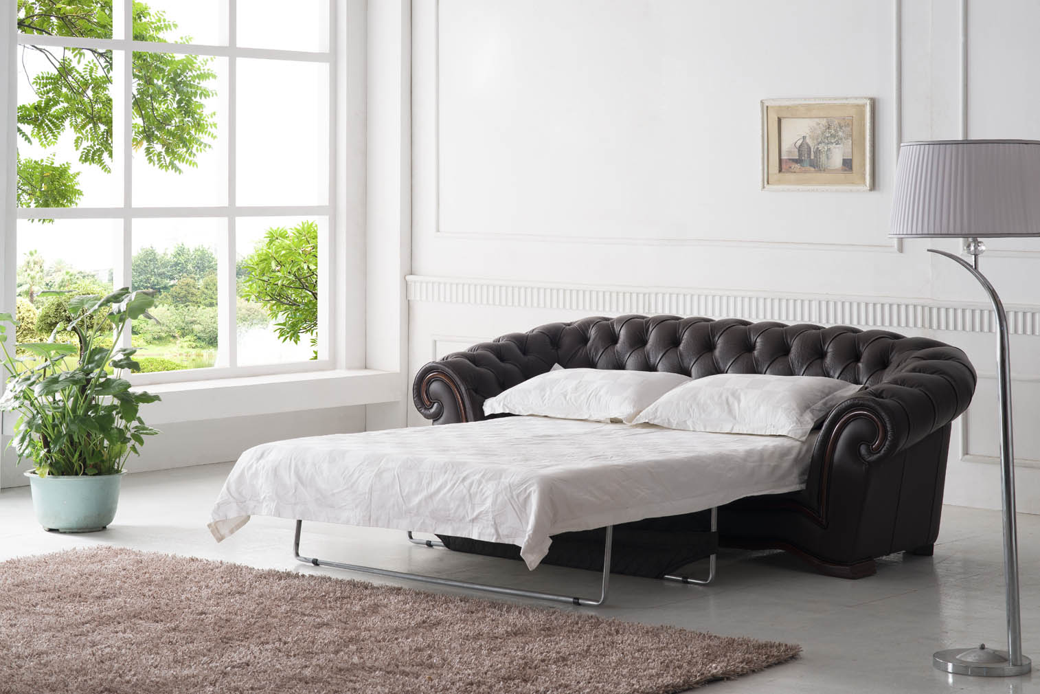 For those seeking versatility, the sofa is available with a convenient bed option, perfect for transforming your space for overnight guests. The design prioritizes comfort with a seat height of 20 inches and a generous seat depth of 23 inches. While the set is stocked in a sophisticated brown (Leather color: FL, #37), it can also be special ordered in a wide variety of colors to match your unique decor. Note that removable cushions are featured exclusively on the sofa-bed model.
