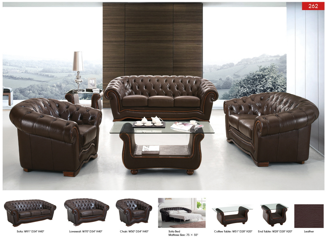 Crafted with meticulous attention to detail, this brown living room set is more than just seating; it is a statement of quality and style. Whether you are looking for Sleepers, Sofas, Loveseats, or Chairs, this Italian leather ensemble offers the perfect blend of traditional craftsmanship and modern functionality. Experience the luxury and durability of top-tier materials with the 262 Full Leather set, a centerpiece designed for years of relaxation and elegance.