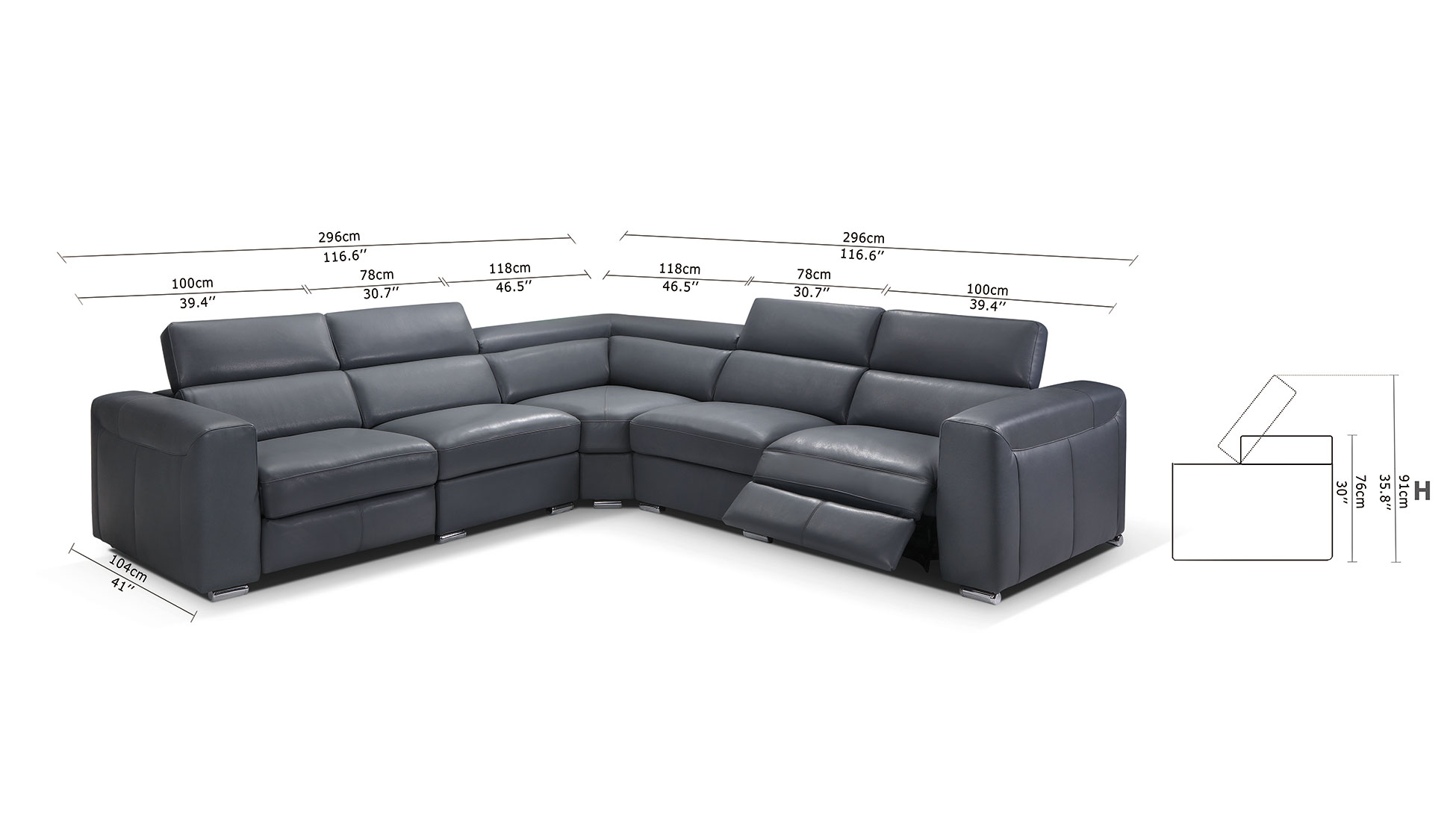 Crafted with high-density foam seating cushions for superior durability, this special order product ensures lasting support for everyday use. The sectional is expertly upholstered in a charcoal gray finish featuring thick #9 cow leather on front surfaces and eco-leather on the back. This combination offers a premium feel while maintaining a sleek, professional appearance that elevates any interior design.