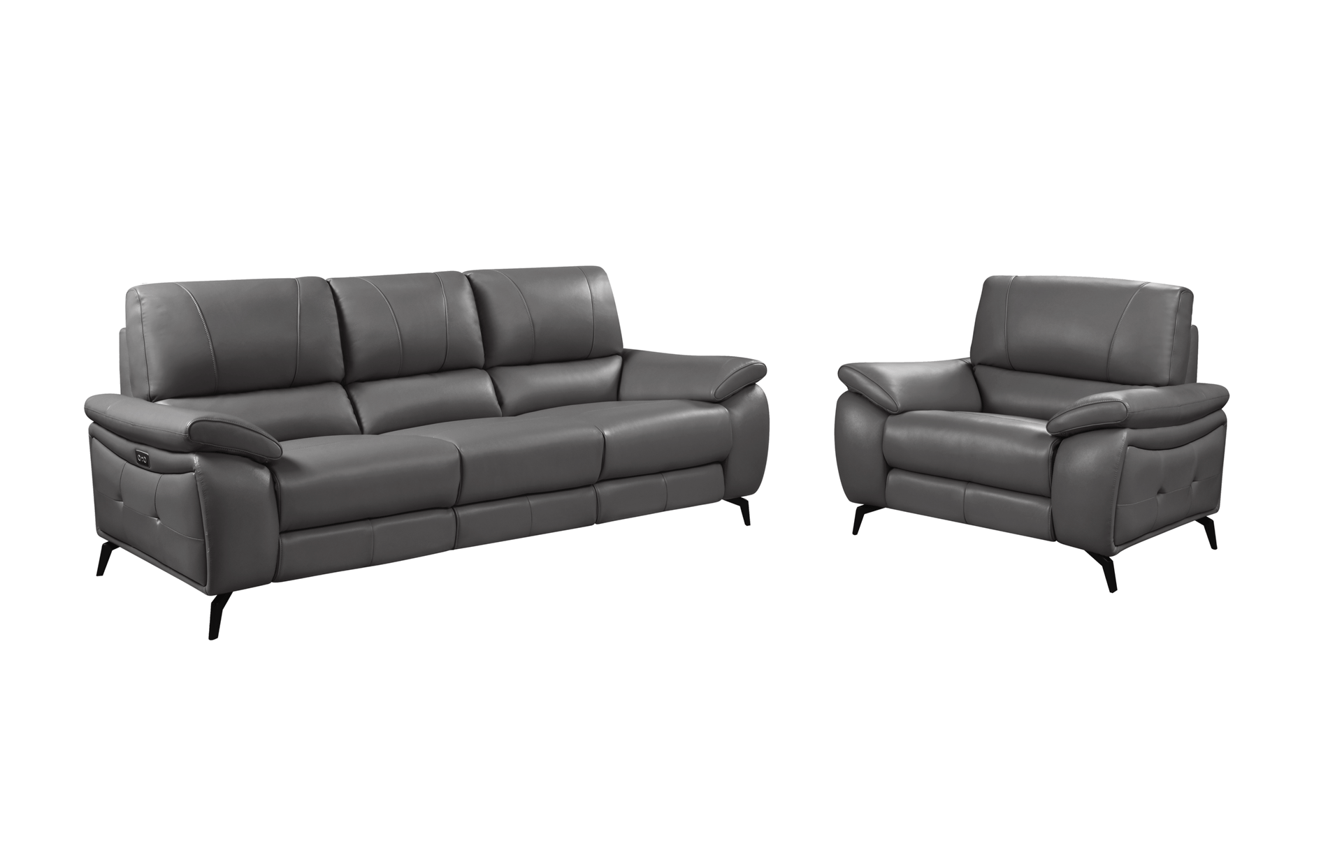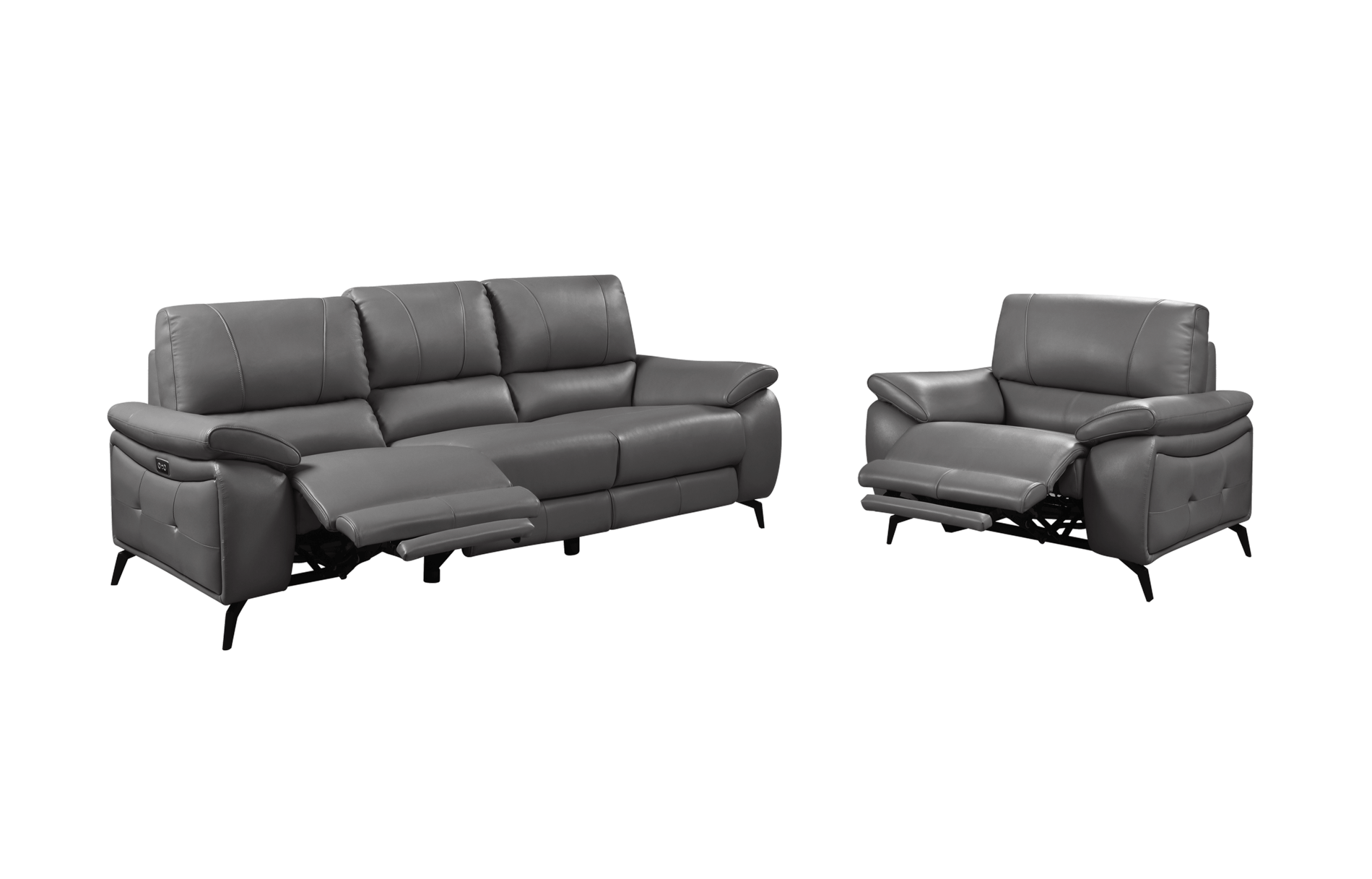Experience the height of modern relaxation with the 2934 Dark Grey Sofa w/ electric recliners, a premier selection from the Extravaganza Collection by ESF. This sophisticated piece is a cornerstone of Reclining and Sliding Seats Sets, designed to transform your living room into a sanctuary of style. Crafted with meticulous attention to detail, it features premium top-grain leather on all front surfaces for a luxurious touch, paired with a durable eco-leather back to ensure lasting quality. The smooth, elegant design is complemented by the deep, sophisticated Stock color Dark Grey #959, making it a versatile addition to any contemporary U.S. home.