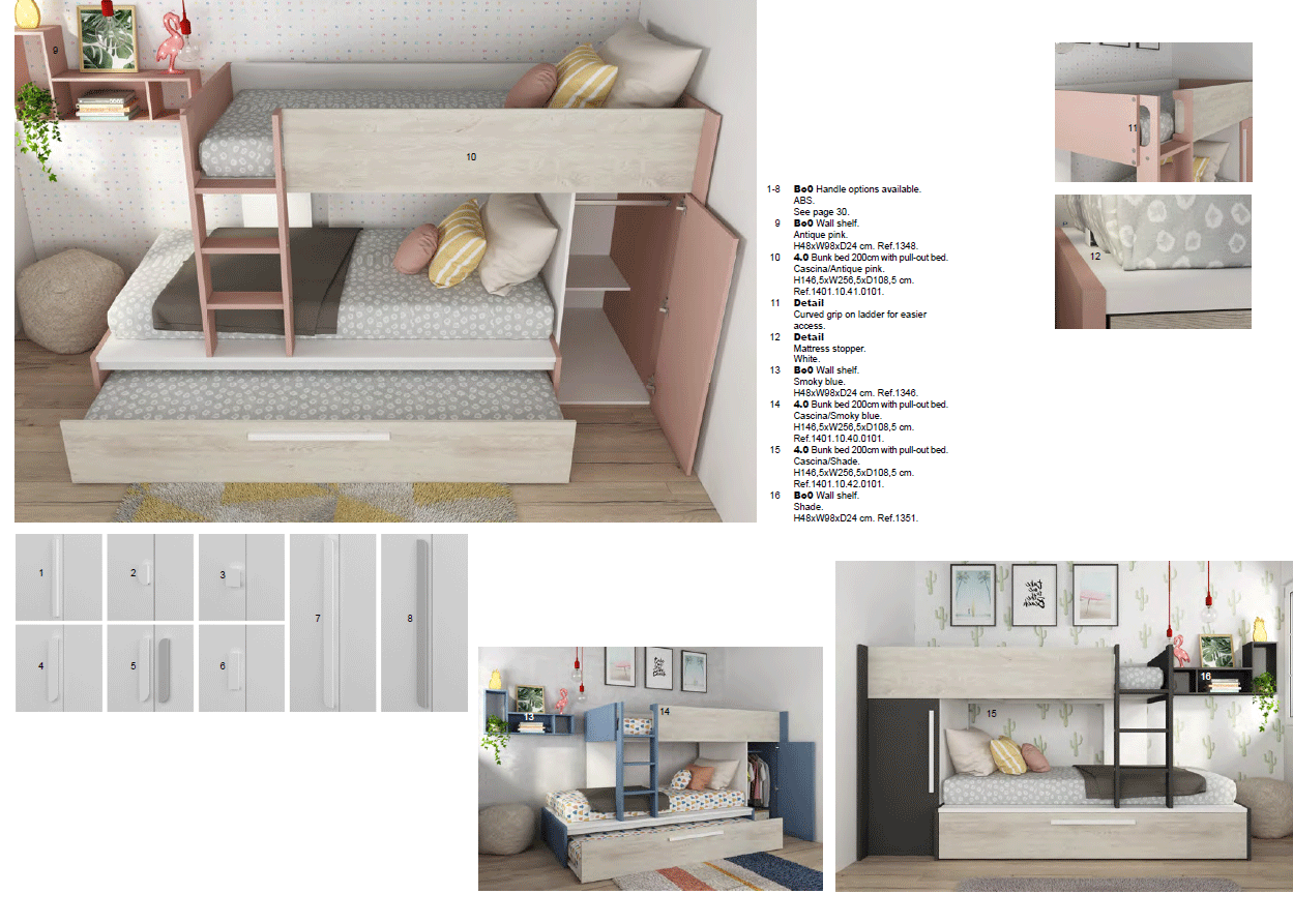 Available in a variety of special order materials and finishes, you can tailor the look to match any decor. Please refer to the final product image to find the specific color number reference for your selection. With its sleek lines and durable construction, this bunk bed is more than just furniture; it is an investment in your child’s happiness and a testament to quality craftsmanship. Elevate your home with this exceptional module designed for the most refined kids’ bedrooms.