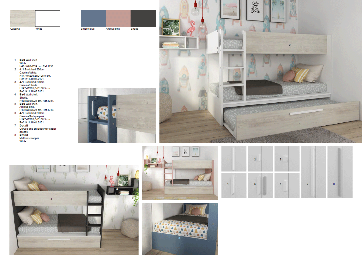 Experience Spanish craftsmanship designed for the modern home. Please refer to the color reference chart in the images to select your perfect hue and create a personalized space your little ones will love.