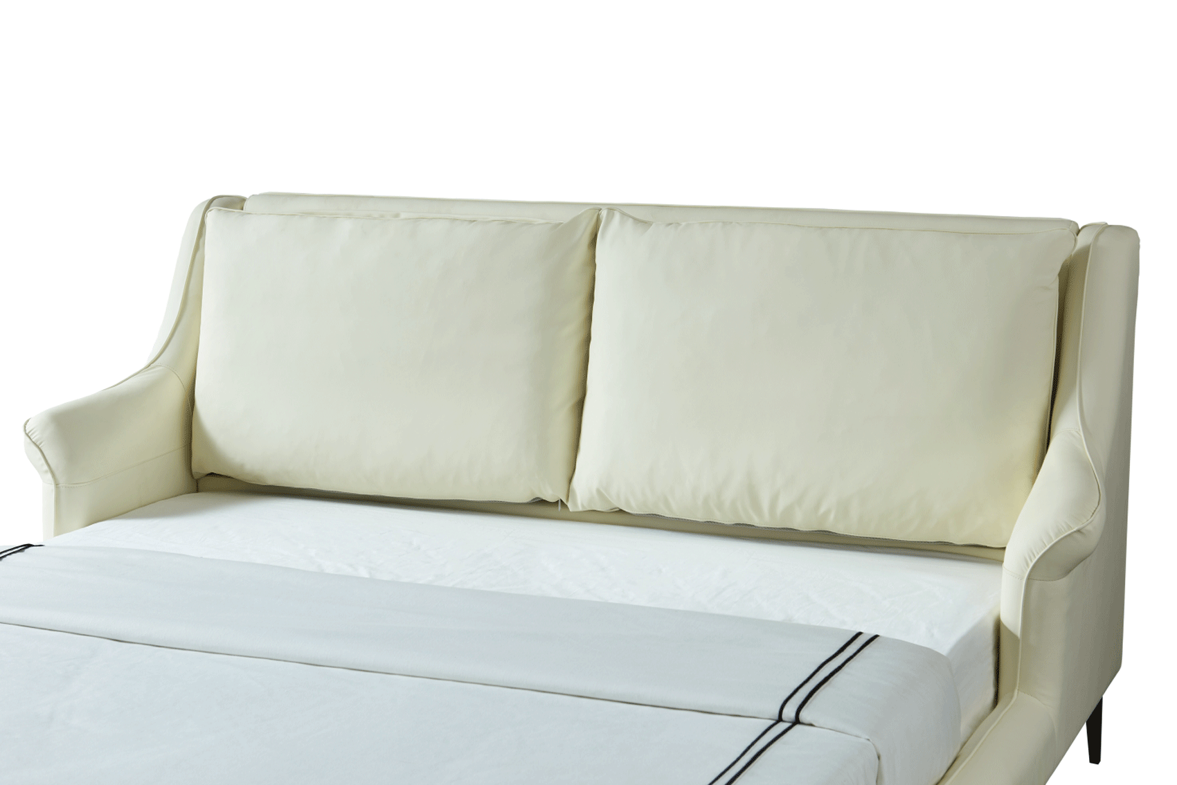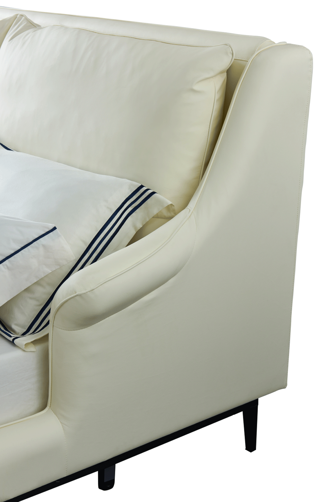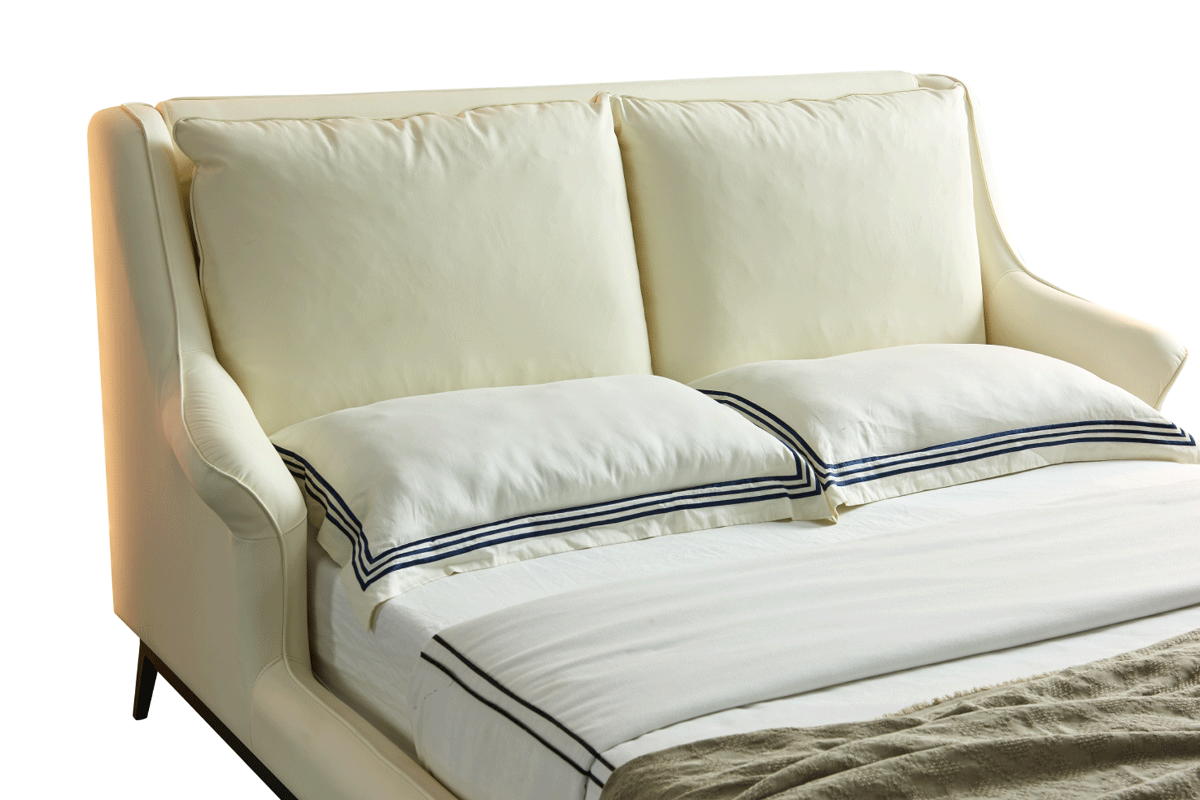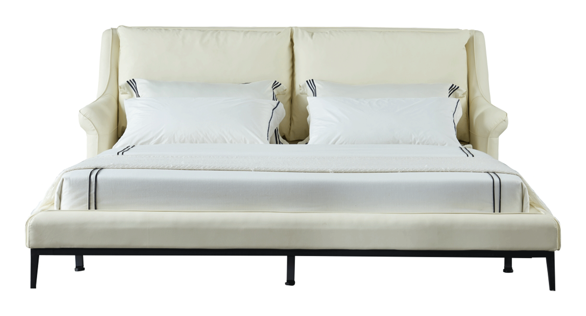 The 6089 Bed European King is a masterpiece of refined modern comfort, designed to serve as a luxurious focal point for any upscale bedroom. Part of the prestigious Extravaganza Collection by ESF, this bed features a soft, inviting silhouette upholstered in premium top-grain leather in an elegant off-white cream color. Its gently contoured, padded headboard offers enhanced comfort for late-night reading or morning relaxation, while the slim black metal legs provide a striking contemporary contrast and a light, elevated feel.