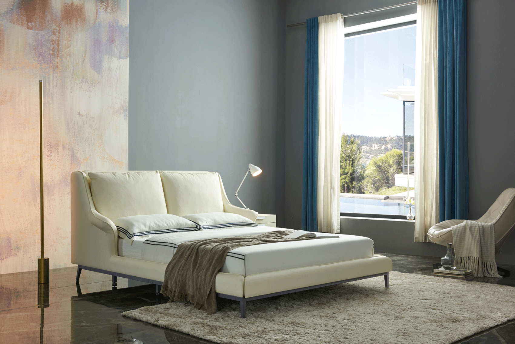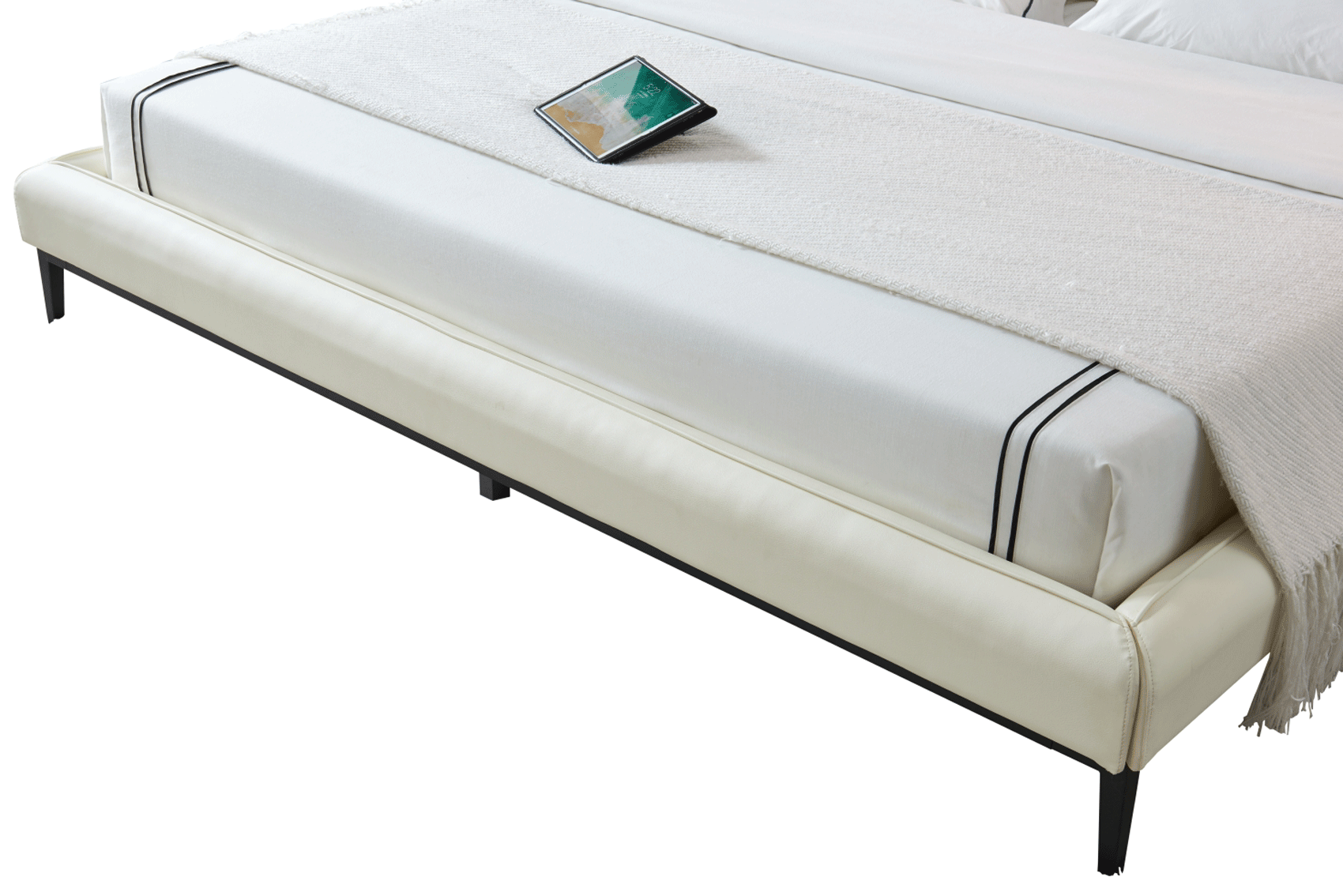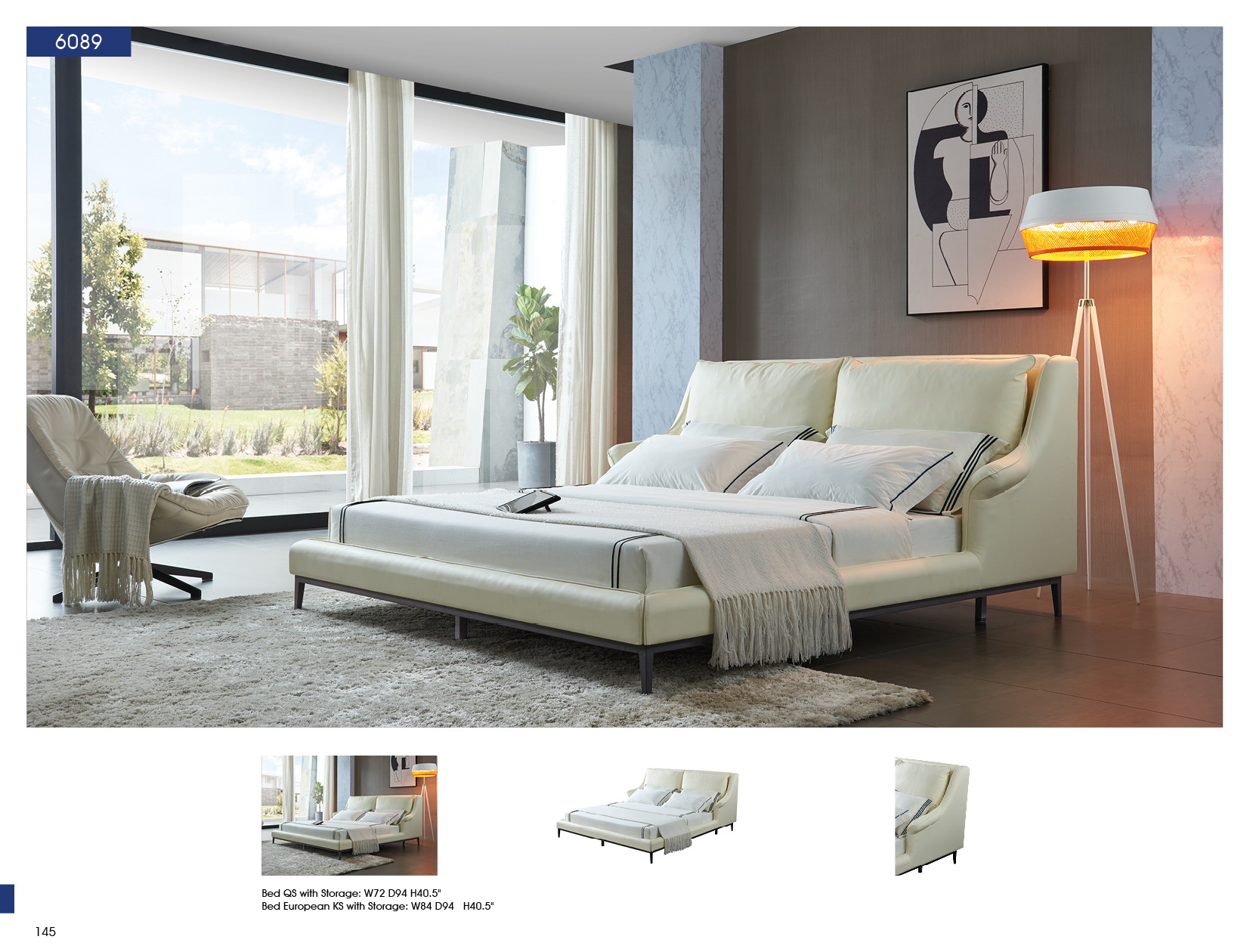 Elevate your sleeping sanctuary with this contemporary European King-size bed that embodies European elegance. Key features include a metal support frame, sleek black legs, and the signature #5825 cream upholstery. Whether you are redesigning a master suite or furnishing a guest room, the 6089 Bed offers a timeless blend of durability and artistic flair, making it an essential addition to any modern home.