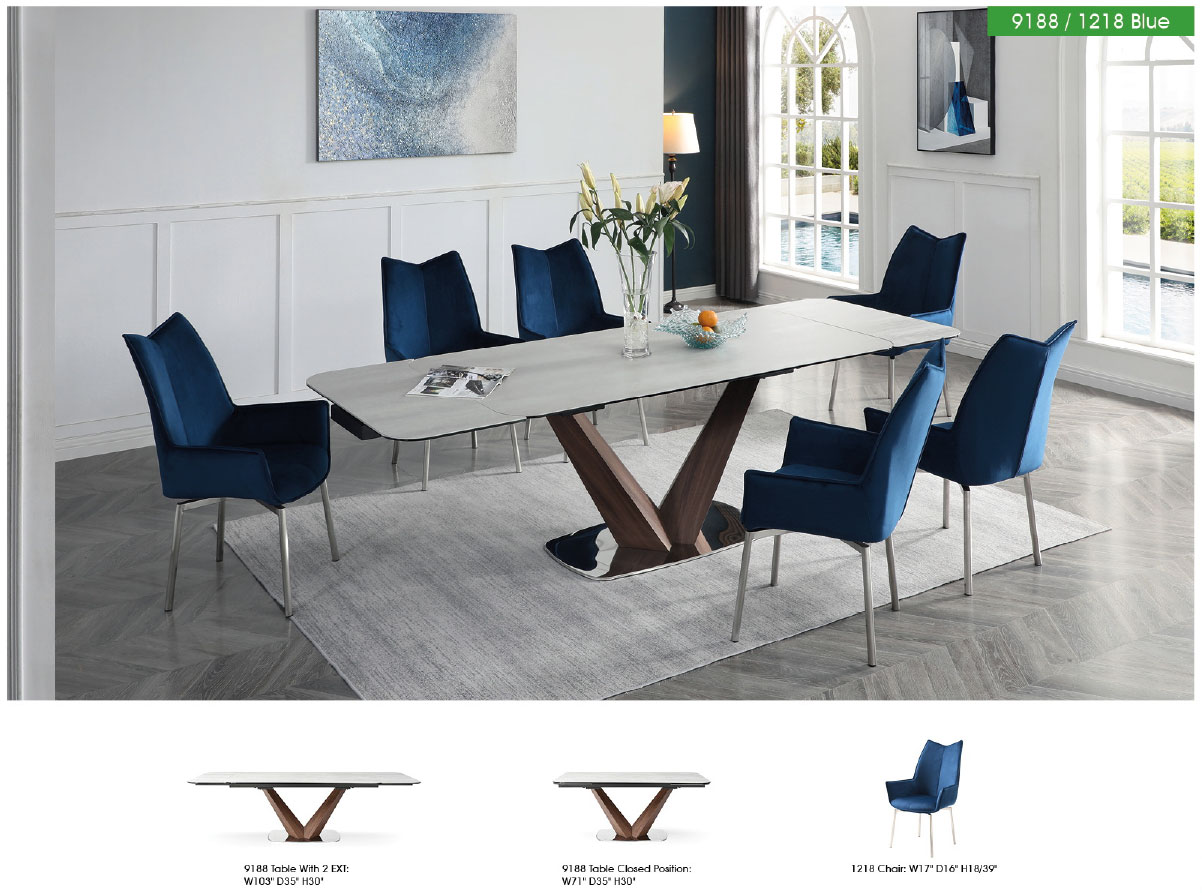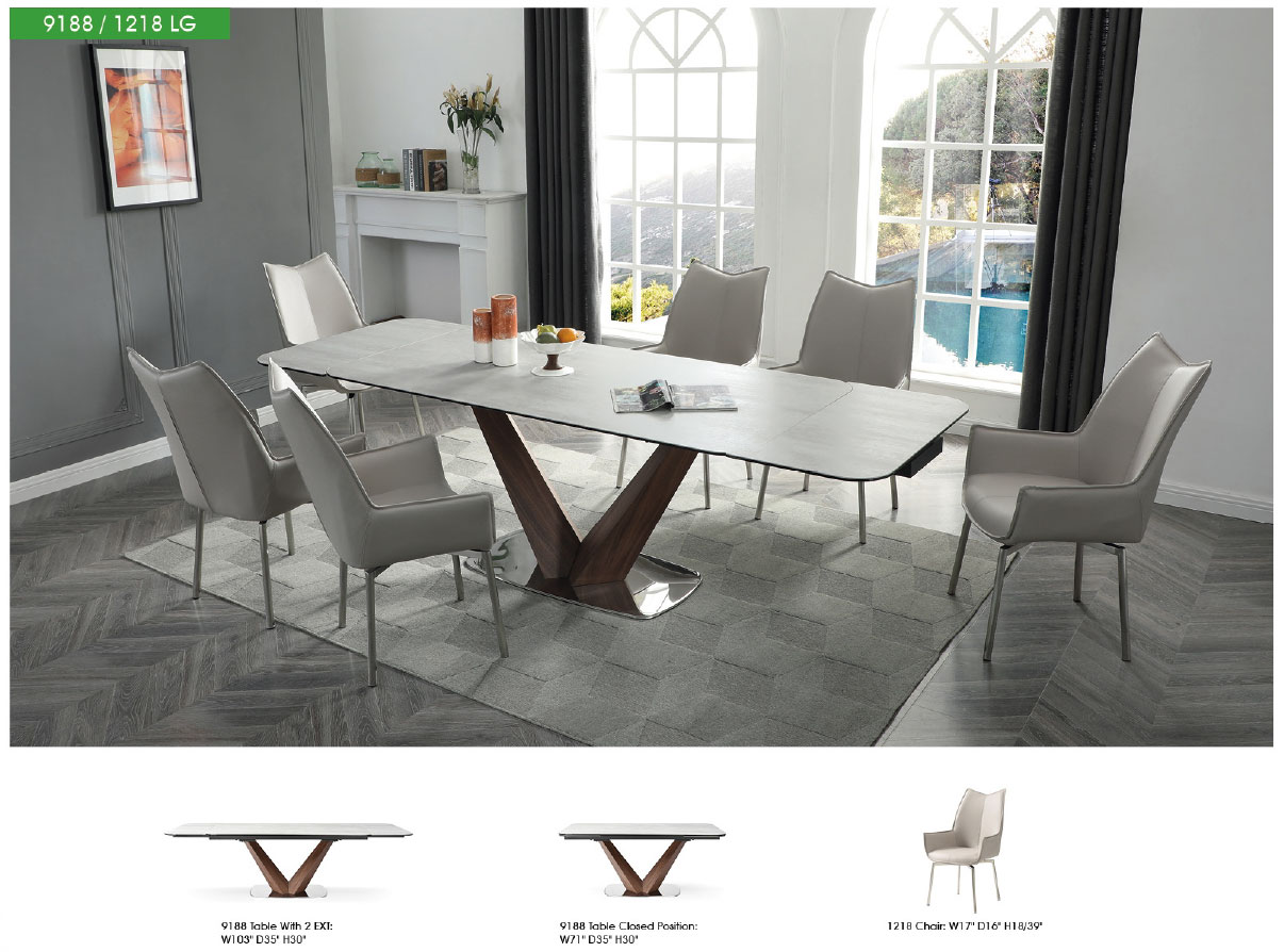 The 9188 Table from the Extravaganza Collection by ESF is a masterpiece of modern design, perfect for those seeking sophisticated Dining Room Furniture Tables. This elegant extended dining table features a durable 8mm glass and 3mm matt finish ceramic top that offers a refined, marble-like aesthetic. Its sturdy metal base is beautifully wrapped in a walnut veneer with a solid wood finish pattern, accented by polished stainless steel for a touch of contemporary brilliance. Designed for versatility, it includes two 16-inch extensions, allowing you to gracefully host intimate dinners or larger gatherings. Whether anchoring a minimalist space or adding a touch of grandeur to a lavish room, its craftsmanship ensures lasting quality. Elevate your home with this blend of metal, steel, and ceramic artistry that transforms every meal into a curated experience.
