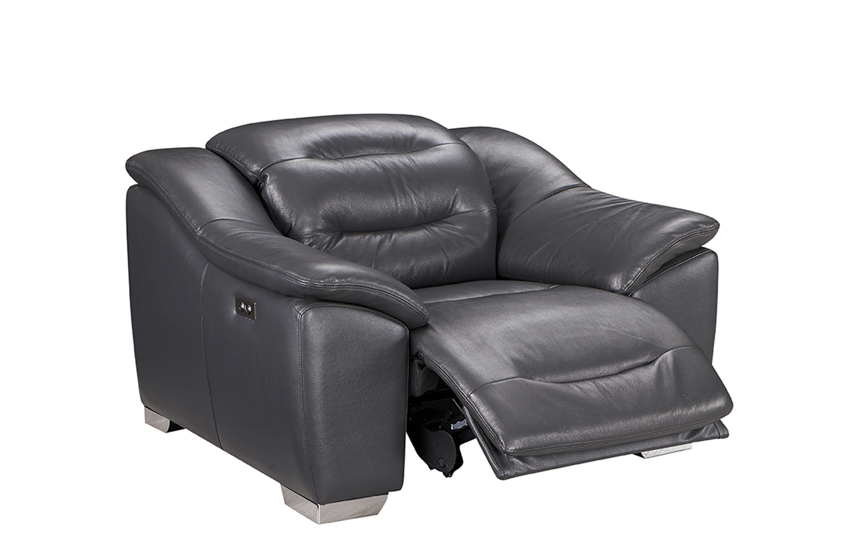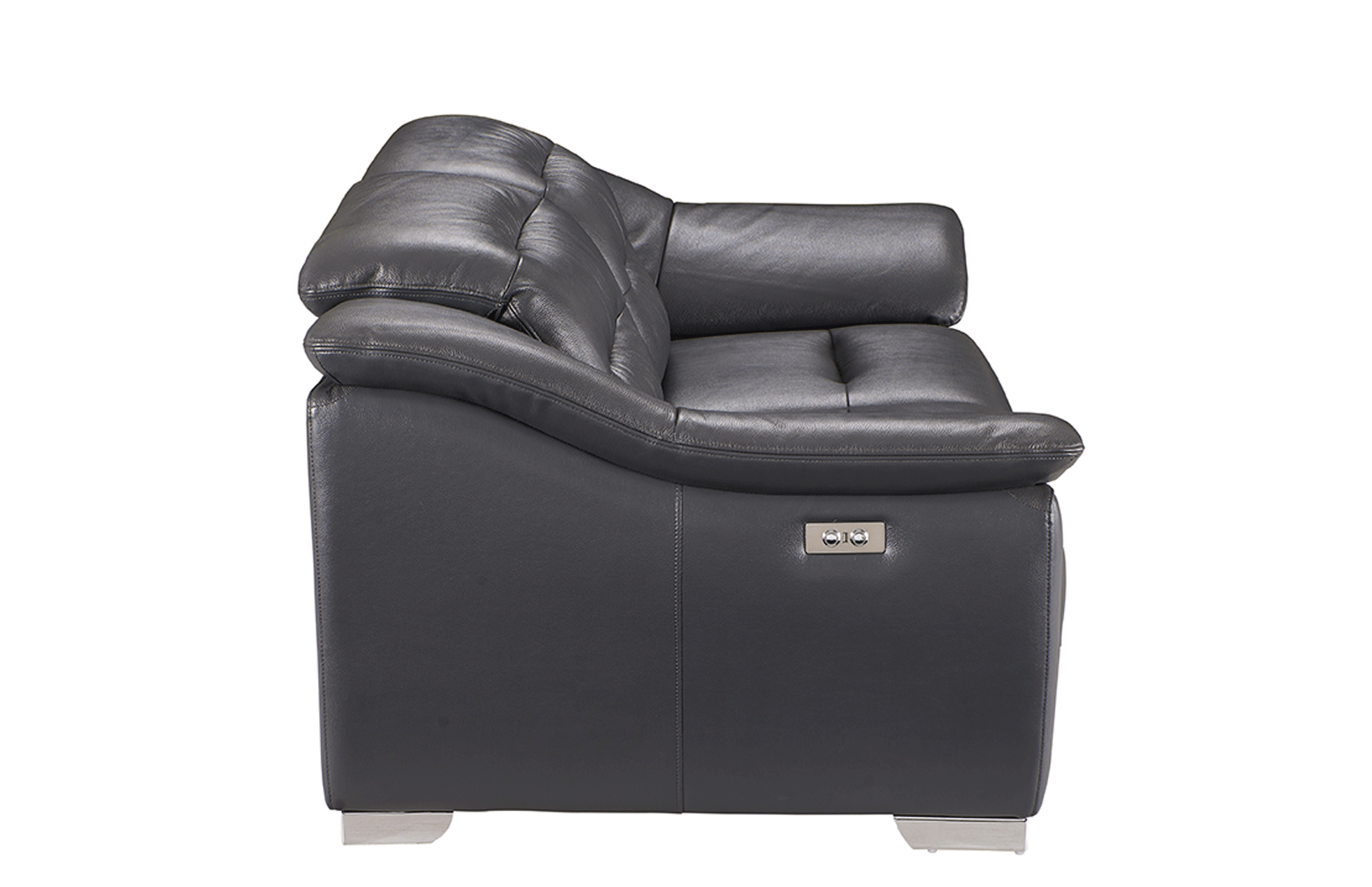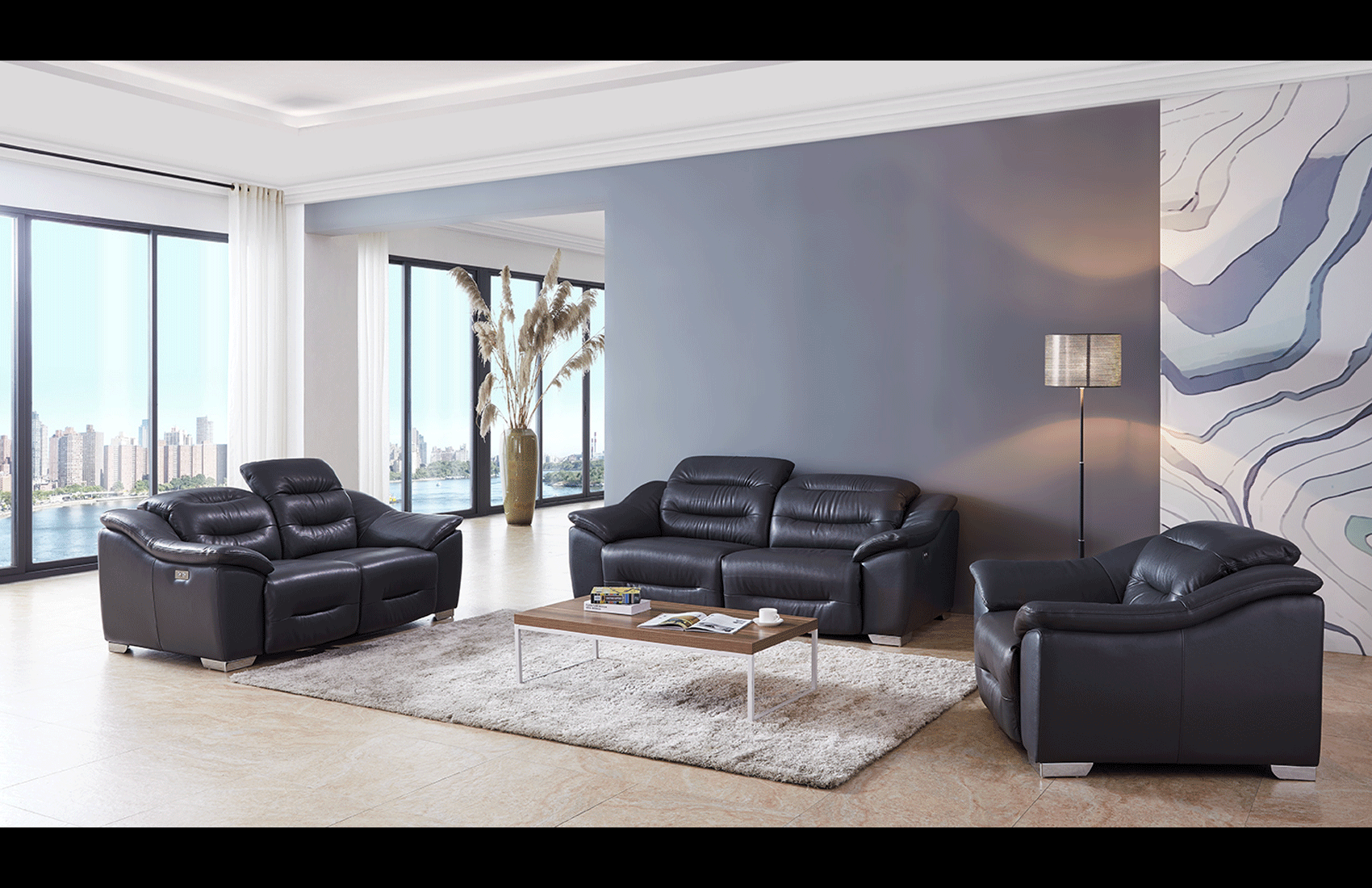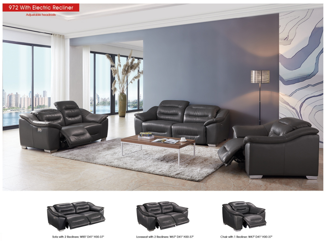 The 972 with 2 Electric Recliners by ESF is a premium living room set from the Extravaganza Collection, featuring a sofa and loveseat in sophisticated dark grey charcoal top-grain leather. Designed for ultimate relaxation, each piece includes smooth electric reclining mechanisms and adjustable headrests to suit your comfort needs. This modern set brings a high-end aesthetic to any contemporary home, combining durable eco-leather backing with a supple leather front for long-lasting luxury and artistic flair.