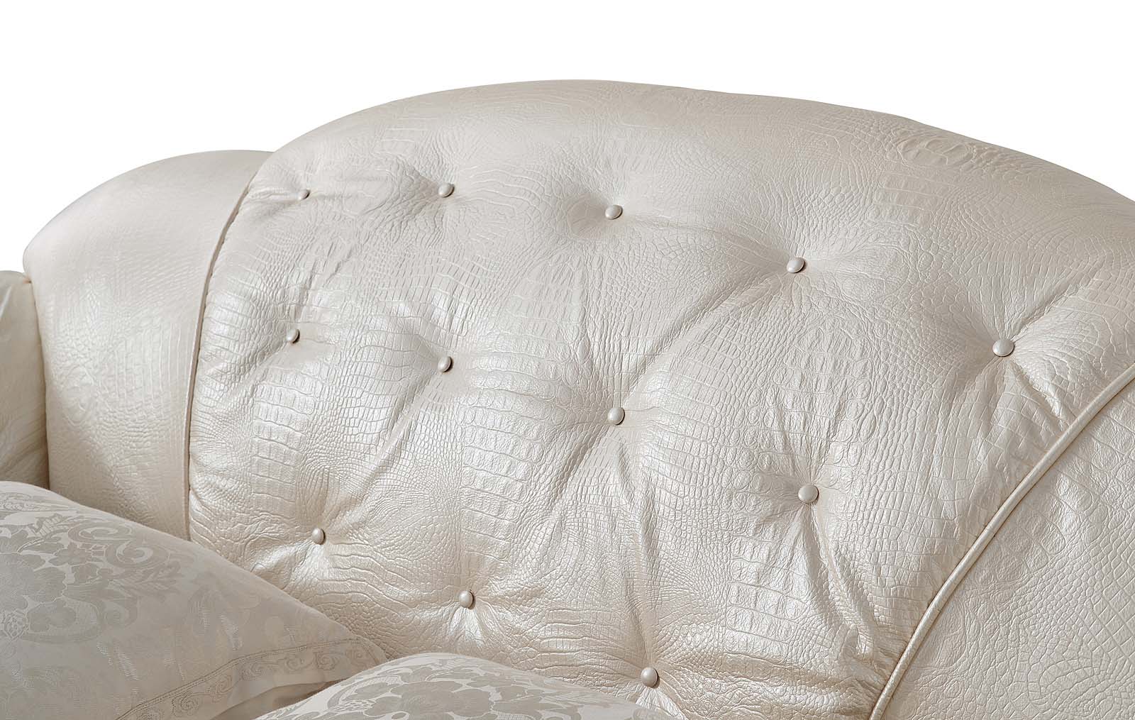 Experience the Apolo Pearl Sofa, a centerpiece of the Extravaganza Collection by ESF that defines modern luxury in any Living Room. This sofa-bed is as functional as it is beautiful, featuring a 3-inch thick mattress and removable cushions to ensure your guests enjoy a restful stay. The design is a masterpiece of textures, showcasing a stunning #31 Perl finish with shiny crocodile-embossed leather that captures the light and elevates your interior aesthetic.