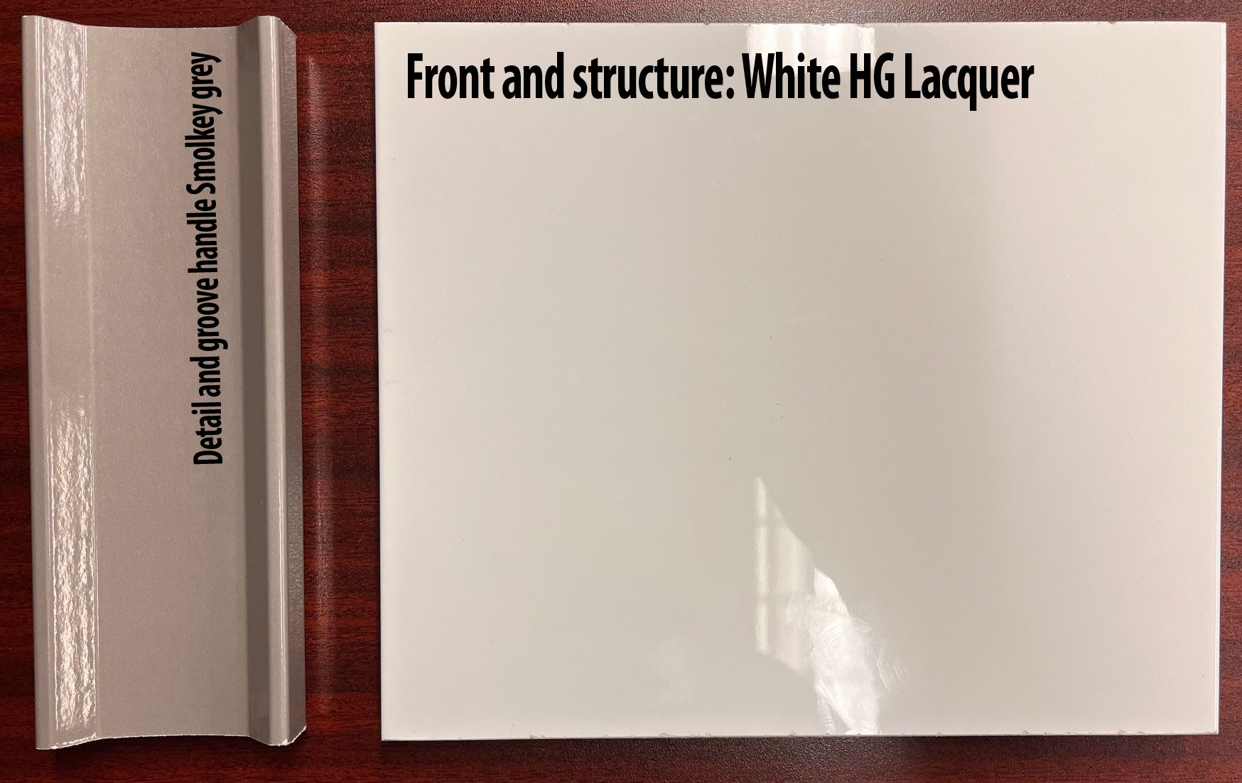 Meticulously constructed from high-quality wood veneer and MDF, the set is built for both durability and style. The visual appeal is elevated by striking glossy lacquered smoky gray details and integrated groove handles, which provide a compelling contrast against the White HG Lacquer finish. These subtle yet deep accents ensure that the Athena set serves as a captivating focal point, balancing avant-garde trends with timeless luxury.