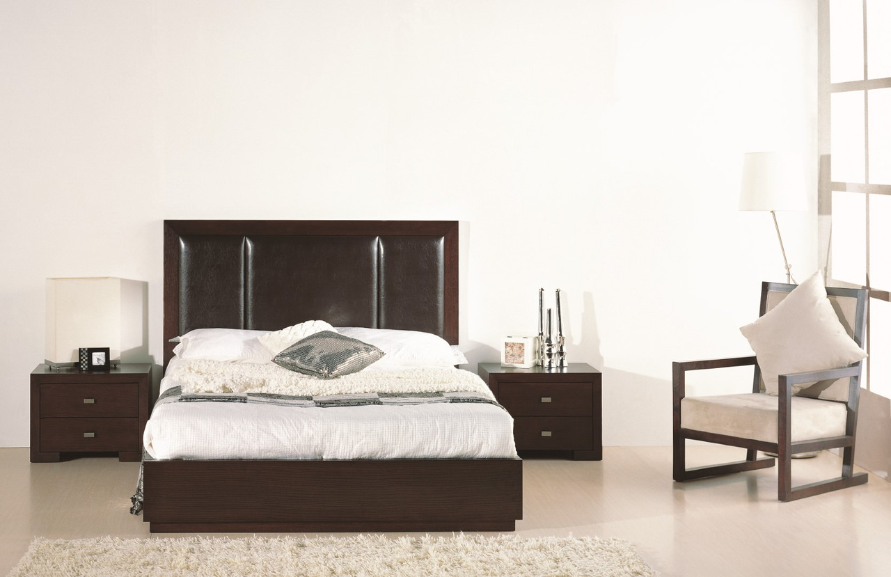 Atlas Queen Size Storage Bed with Brown Leatherette Headboard Six Drawers in Wenge