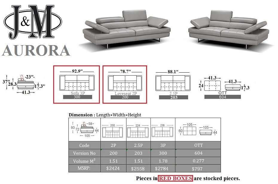 The Aurora Sofa set by J&M is class fully designed with padded adjustable armrest that feature a ratchet system for adjust ability. The Aurora sofa set also features 2 adjustable head cushions on the sofa & love seat, and boxed back seat cushions. This beautiful sofa set is constructed from thick Italian Leather, designed for flexibility and durability.