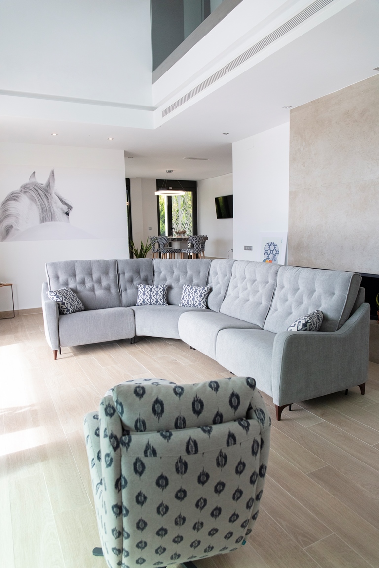 Experience innovation at your fingertips with hidden touch buttons that allow for seamless adjustment, while the continuous seat cushion and footrest provide an uninterrupted surface for ultimate relaxation. Built with premium fabrics and special order materials, the Avalon is designed for those who refuse to compromise on quality. This exceptional comfort is a hallmark of Spanish manufacturing, making it a standout addition to any refined interior.