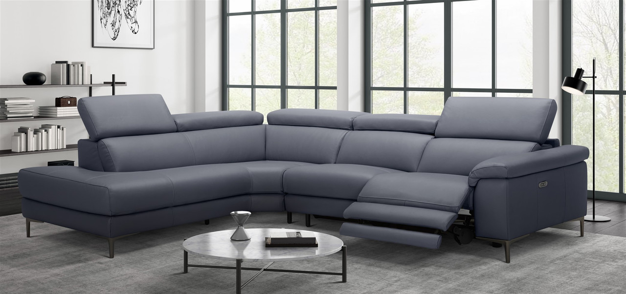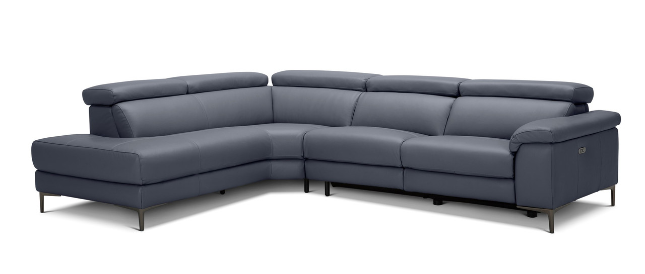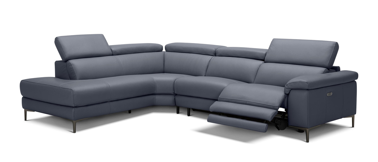 5320 Axel Sectional in NL5100 Stone Blue Leather/Split with LHF Chaise and RHF Electric Recliner 116*40/91*30/38