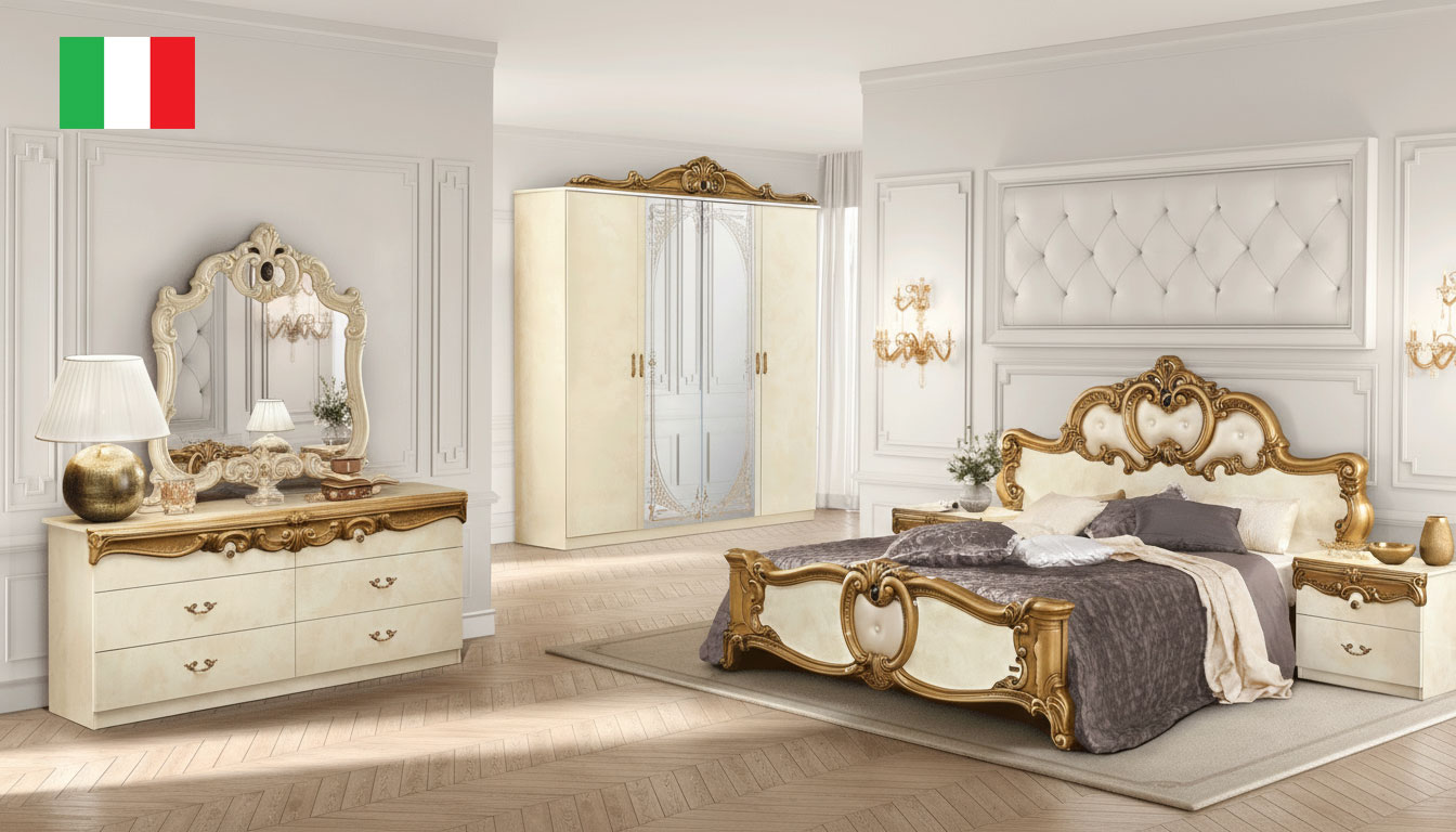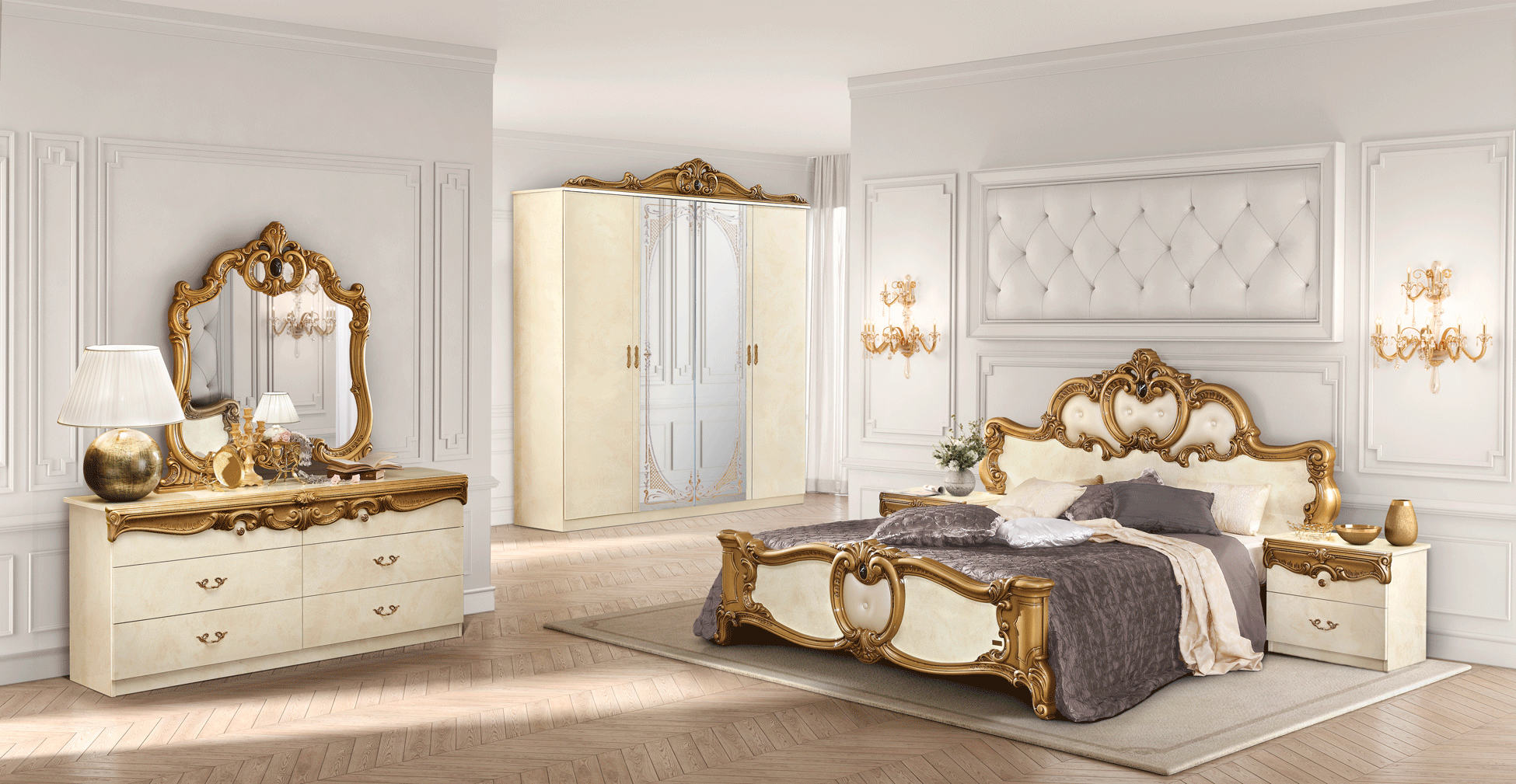 Experience the height of luxury with a bedroom set that prioritizes both style and substance. The rich gold finishes provide a warm metallic depth that catches the light, while the ivory tones keep your space feeling bright and airy. Whether you are seeking a complete room makeover or a singular piece of artistry, this Italian-made collection offers the perfect blend of traditional craftsmanship and modern grandeur for the discerning homeowner.