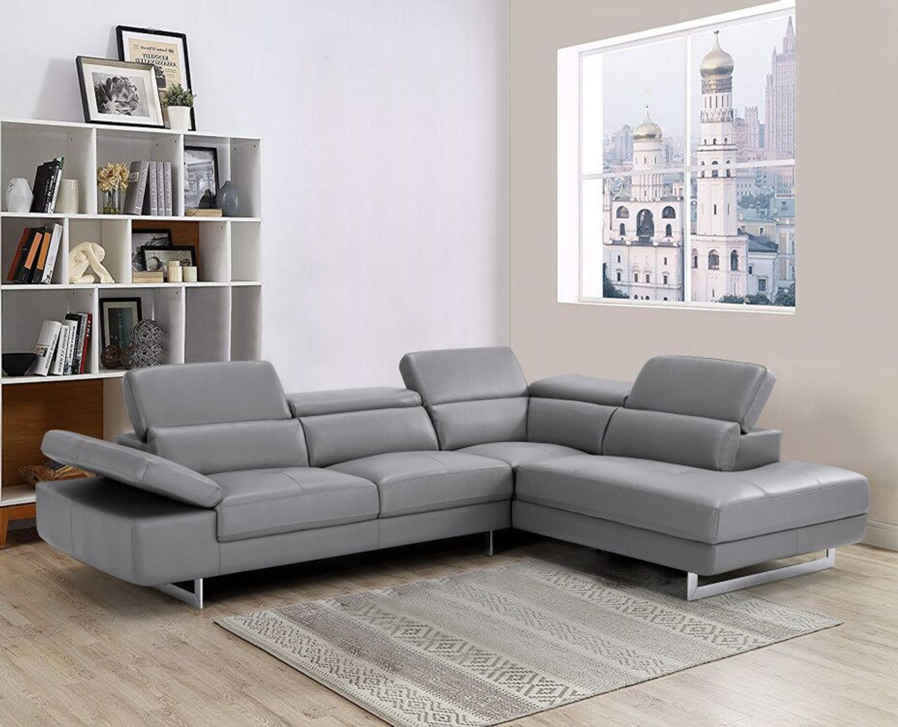 Sectional with Facing Right Chaise and motion headrests in CAT3 7576 Dark Grey/PVC