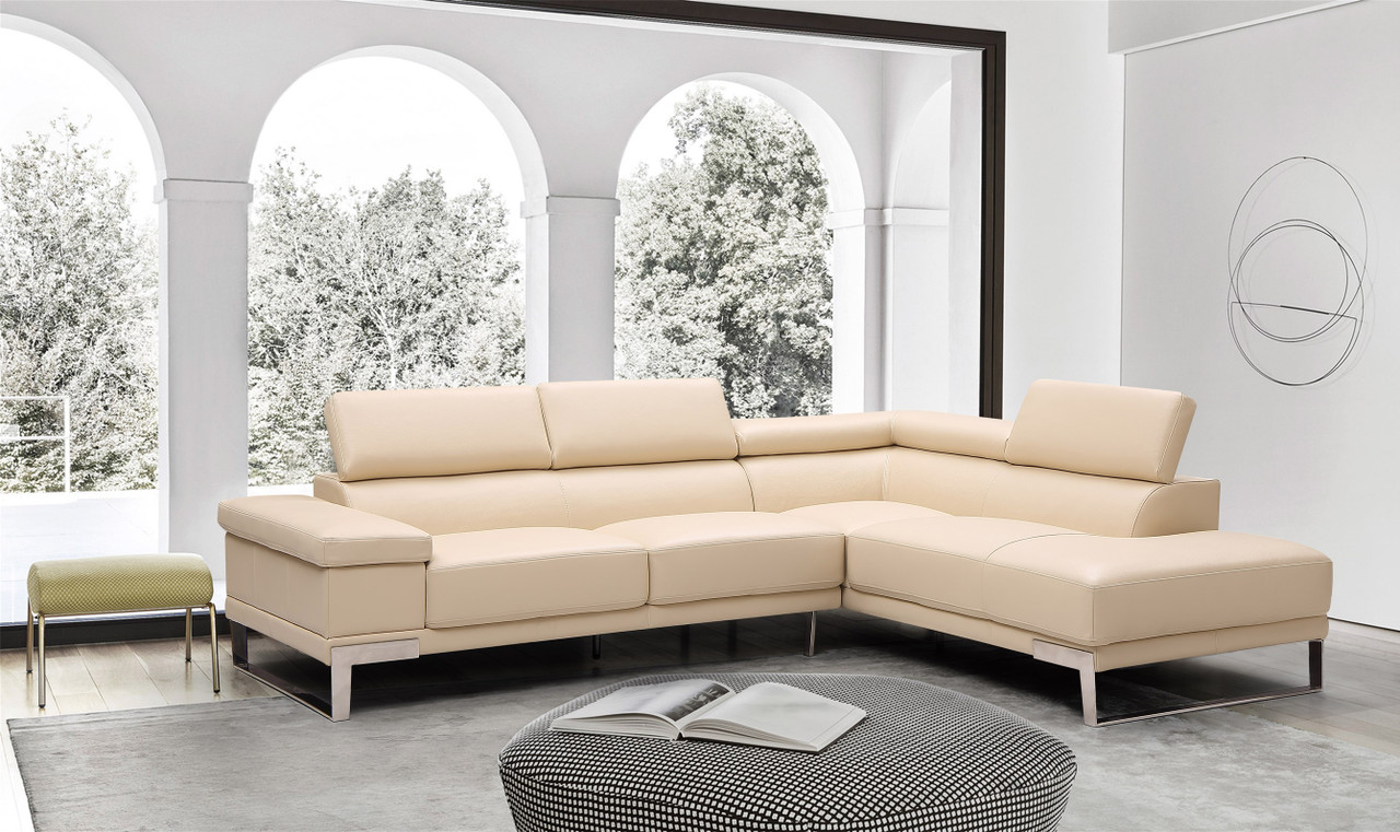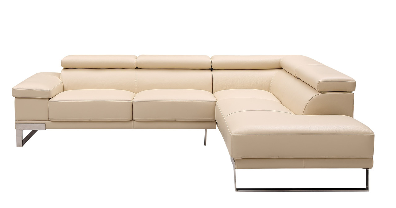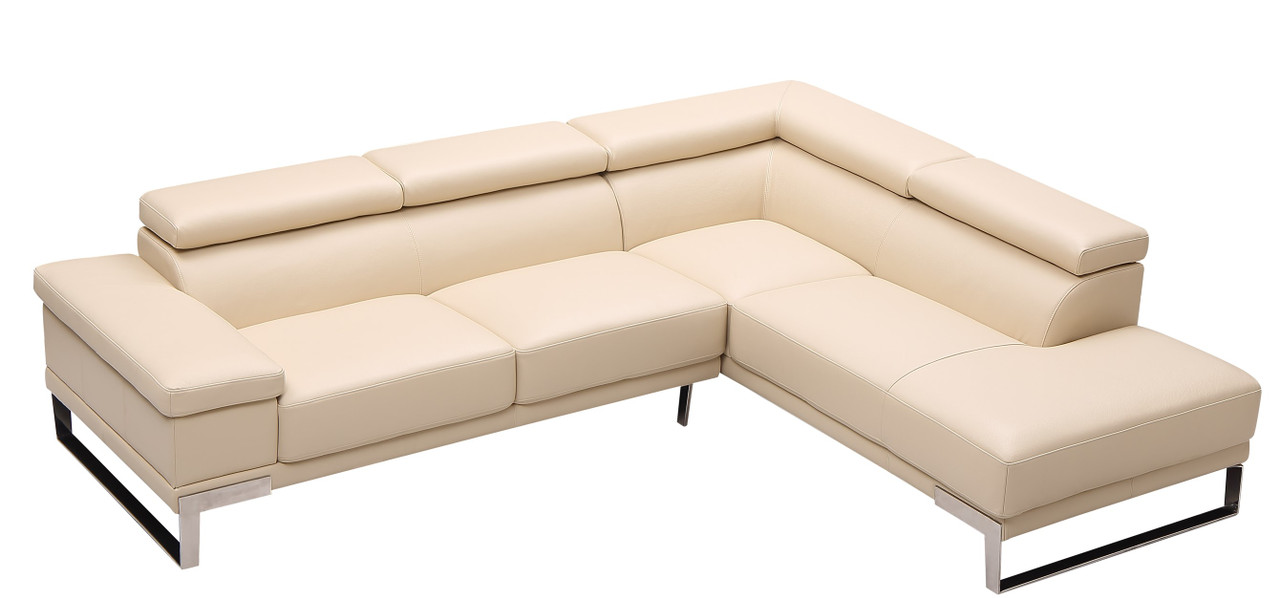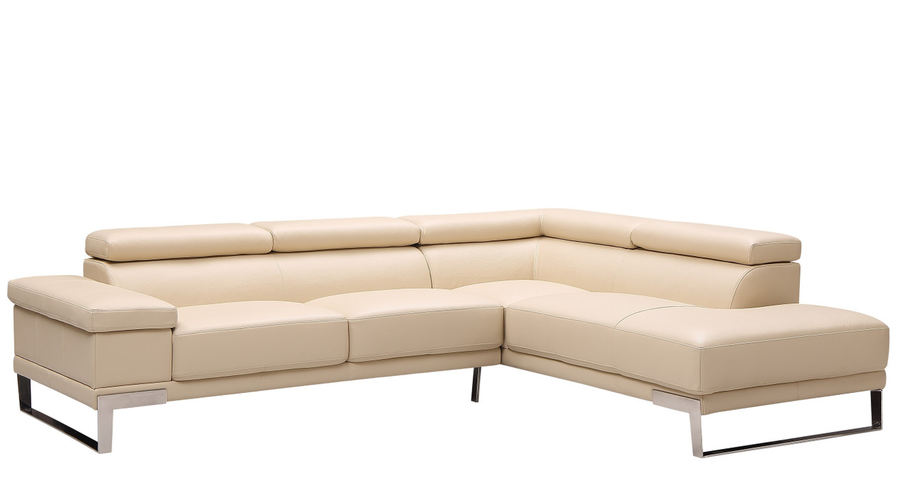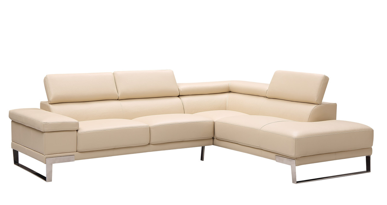 528 Baxter Sectional with Facing Right Chaise in EV213 Beige Full Leather 112 x 40/89 x 29/37