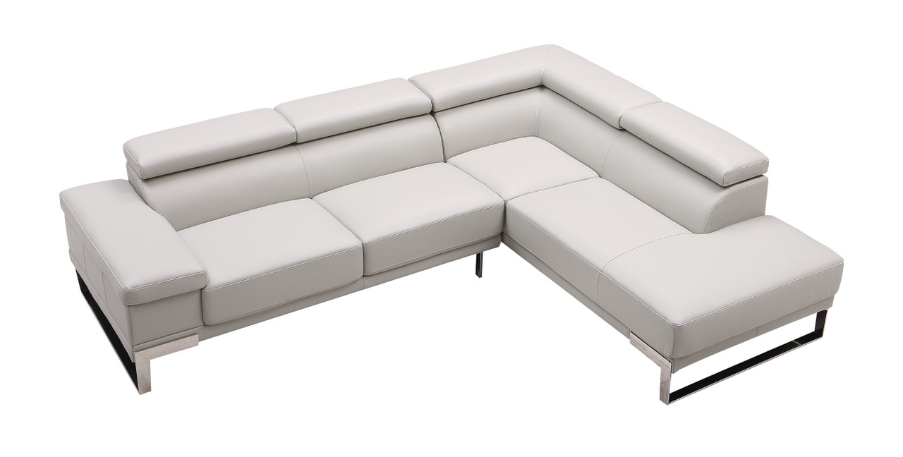 528 Baxter Sectional with Facing Right Chaise in EV212 Smoke Full Leather 112 x 40/89 x 29/37