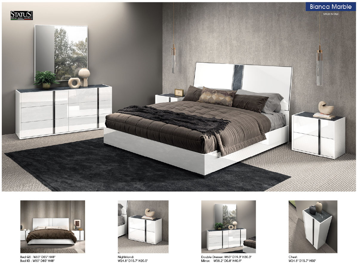 Immerse yourself in a haven of modernity where every detail, from the robust frame to the polished marble-look finish, exudes excellence. Made in Italy, this bed represents the pinnacle of European design, offering a perfect balance of comfort and high-end allure. Transform your sleeping quarters into a gallery of elegance with this versatile and sophisticated centerpiece.