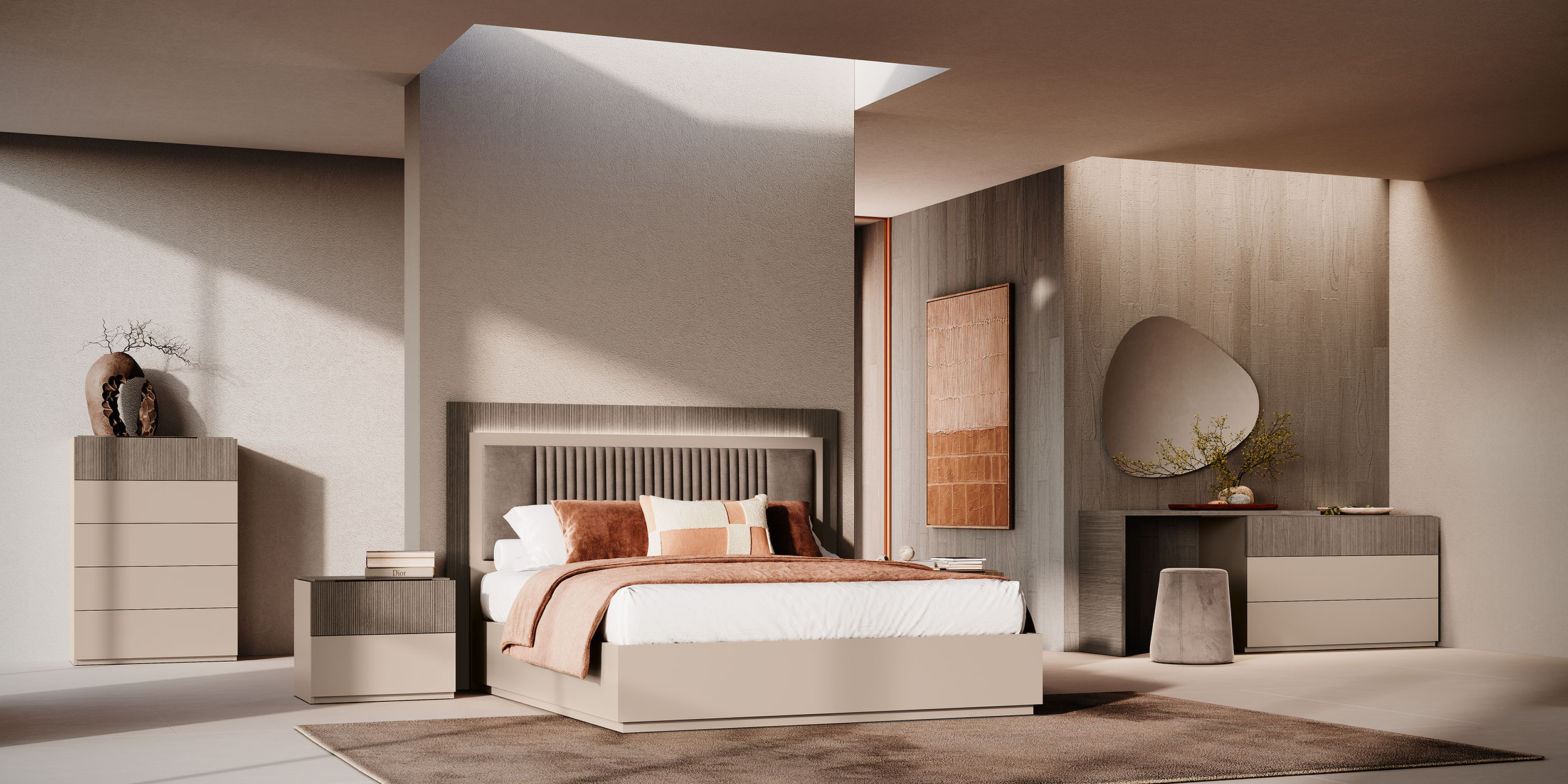 With its Italian heritage and meticulous construction, this chest represents the pinnacle of modern design. The textured panels and smooth finishes create a tactile experience that enhances the overall ambiance of your bedroom. Ideal for those who appreciate fine craftsmanship and contemporary styling, this chest of drawers is a versatile module designed to harmonize perfectly with the most refined elements of your home.