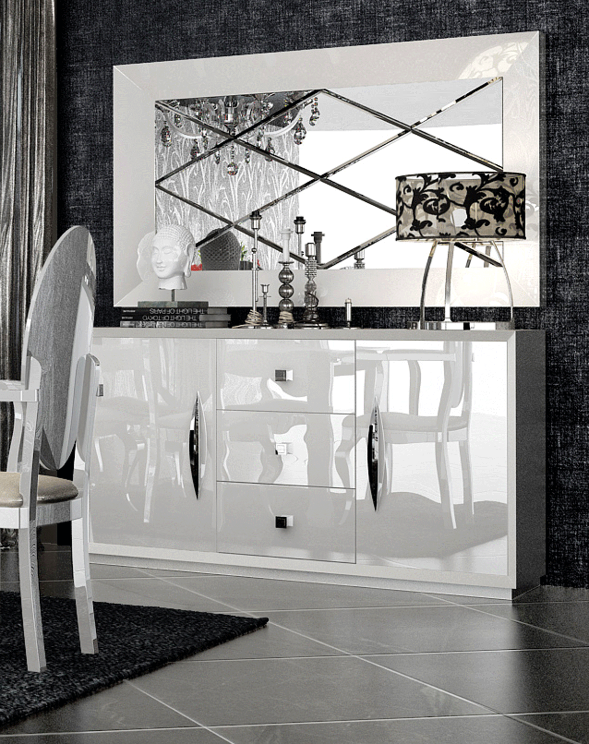 Experience the pinnacle of European elegance with the Carmen mirror for double dresser/ Buffet, a stunning addition to our exclusive Clearance Bedroom selection. Meticulously crafted in Spain by Franco Spain for ESF, this mirror embodies a seamless blend of modern sophistication and timeless quality. Its brilliant 220 High Gloss White finish radiates a sense of purity and light, transforming your room into a sanctuary of refined style.