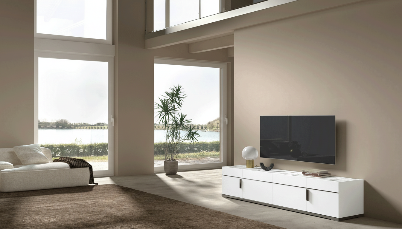 A crisp white finish is beautifully complemented by elegant marble-inspired accents, creating a bright and refined focal point that resonates with contemporary aesthetics. This Made in Italy masterpiece offers spacious storage for all your media components and everyday essentials, maintaining a clean and minimalist look that defines upscale interiors. Ideal for modern living rooms, the Carrara TV stand reflects a commitment to quality and clean sophistication.