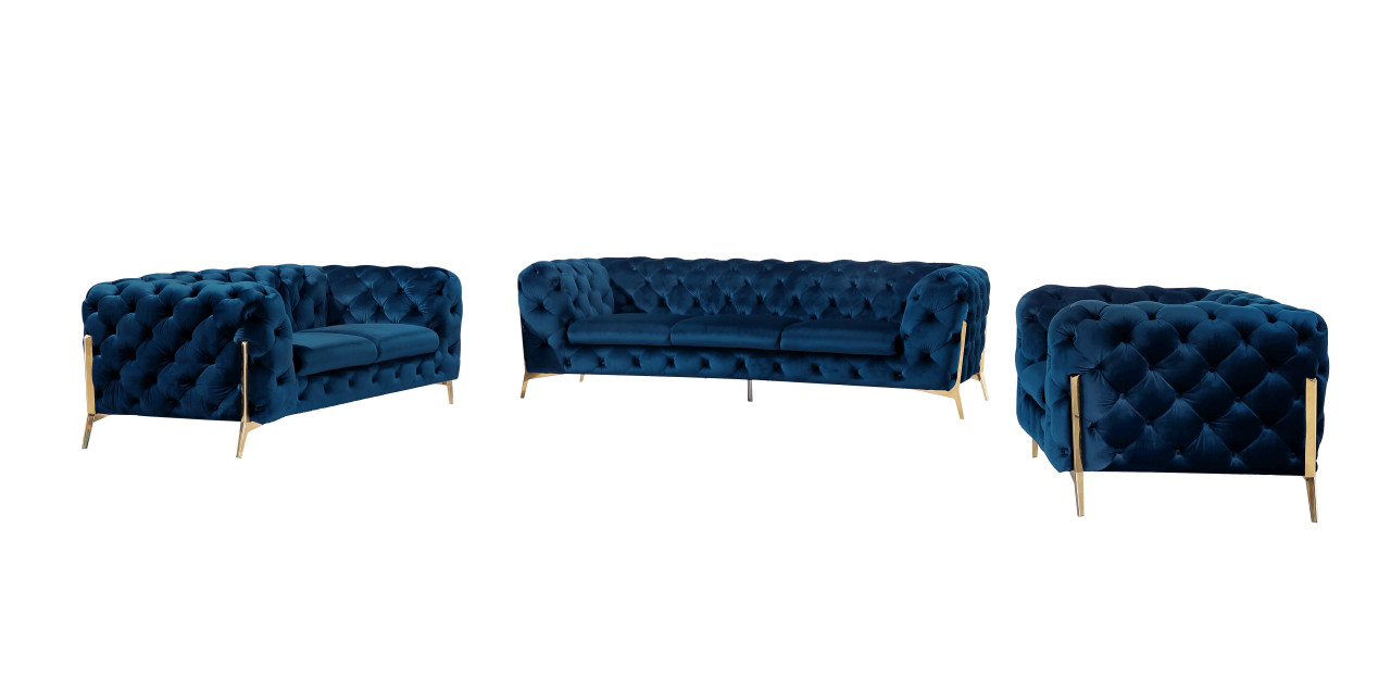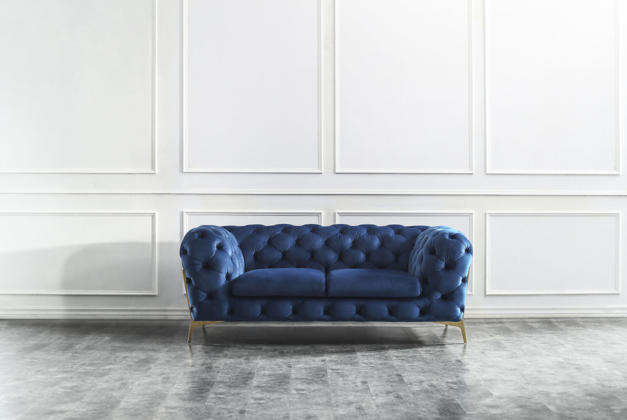 Chester Loveseat in ENJO-72 Heritage Blue Fabric with Gold Accent Legs