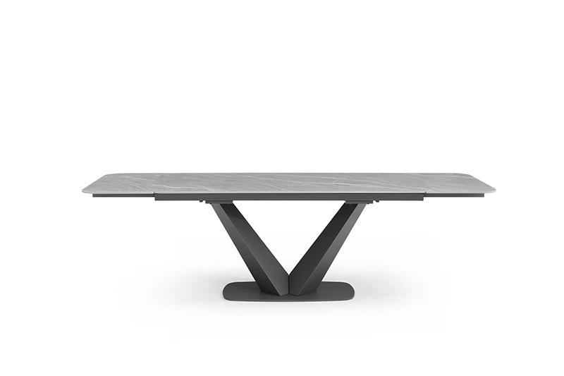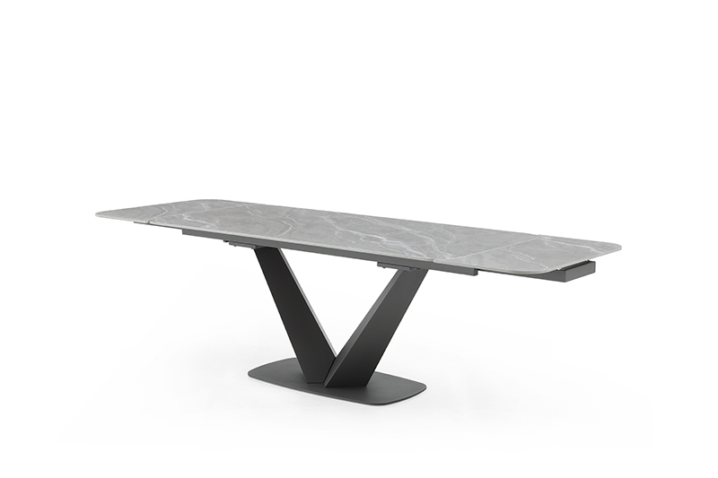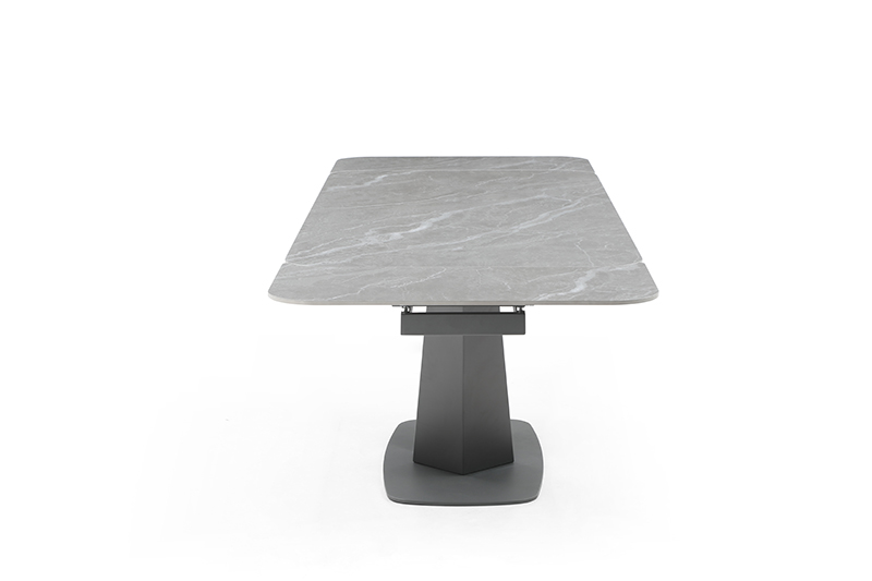Elevate your home with the Cloud Table with 1218 swivel grey taupe chairs, a masterpiece from the Extravaganza Collection by ESF. This sophisticated ensemble, featured in our Kitchen Tables and Chairs Sets, transforms every meal into a refined gala. The centerpiece is a stunning dining table boasting a 12mm grey ceramic surface that masterfully emulates the ethereal beauty of marble. Anchored by a sanded dark grey powder-coated metal base, it includes two 16-inch extensions to accommodate grander gatherings. Complementing the table are swivel chairs upholstered in light grey PU with sleek stainless steel legs, offering both comfort and modern flair. Crafted with a blend of metal and ceramic, this set reflects a commitment to artistic quality and durable design. Whether hosting a formal dinner or a casual brunch, this versatile collection harmonizes perfectly with the most refined interior elements, bringing a touch of Spanish-inspired elegance to your dining space.