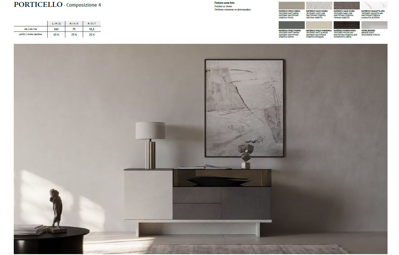 The Comp 4 from the Porticello Collection by Tomasella – Italy is a testament to the sophisticated fusion of minimalist aesthetics and superior Italian craftsmanship. This exquisite sideboard, originating from Italy and brought to you by ESF, serves as a masterclass in modern design, featuring a sleek silhouette that effortlessly balances refined lines with practical utility. Whether placed in a contemporary living room or a high-end office, its understated elegance and beautifully balanced proportions make it a standout addition to any refined interior.