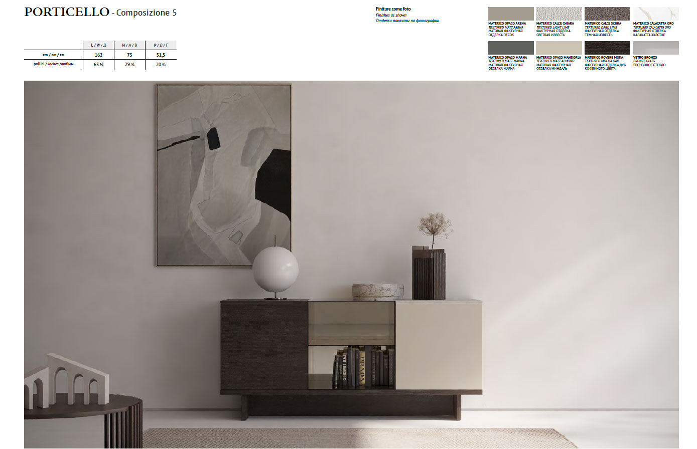 The Comp 5, a standout piece from the Porticello Collection by Tomasella, Italy, brings a touch of Mediterranean sophistication to your home. Expertly crafted in Italy and brought to you by ESF, this sideboard is more than just furniture; it is a testament to premium Italian craftsmanship. Its sleek, modern silhouette is beautifully balanced, blending minimalist design with high-end functionality. Whether used as a focal point in your entryway or as a refined storage solution in your dining area, it elevates any living space with its understated elegance and timeless appeal.