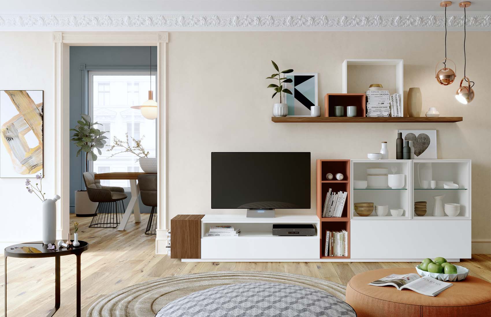 Transform your media space into an elegant gallery with the Ckron Collection. This modern wall unit is designed to accommodate contemporary entertainment needs while maintaining a sleek, minimalist silhouette. The use of premium special order materials ensures a durable and luxurious finish that withstands the test of time. Whether you are hosting a movie night or displaying curated decor, this versatile module provides the ideal balance of storage and display.