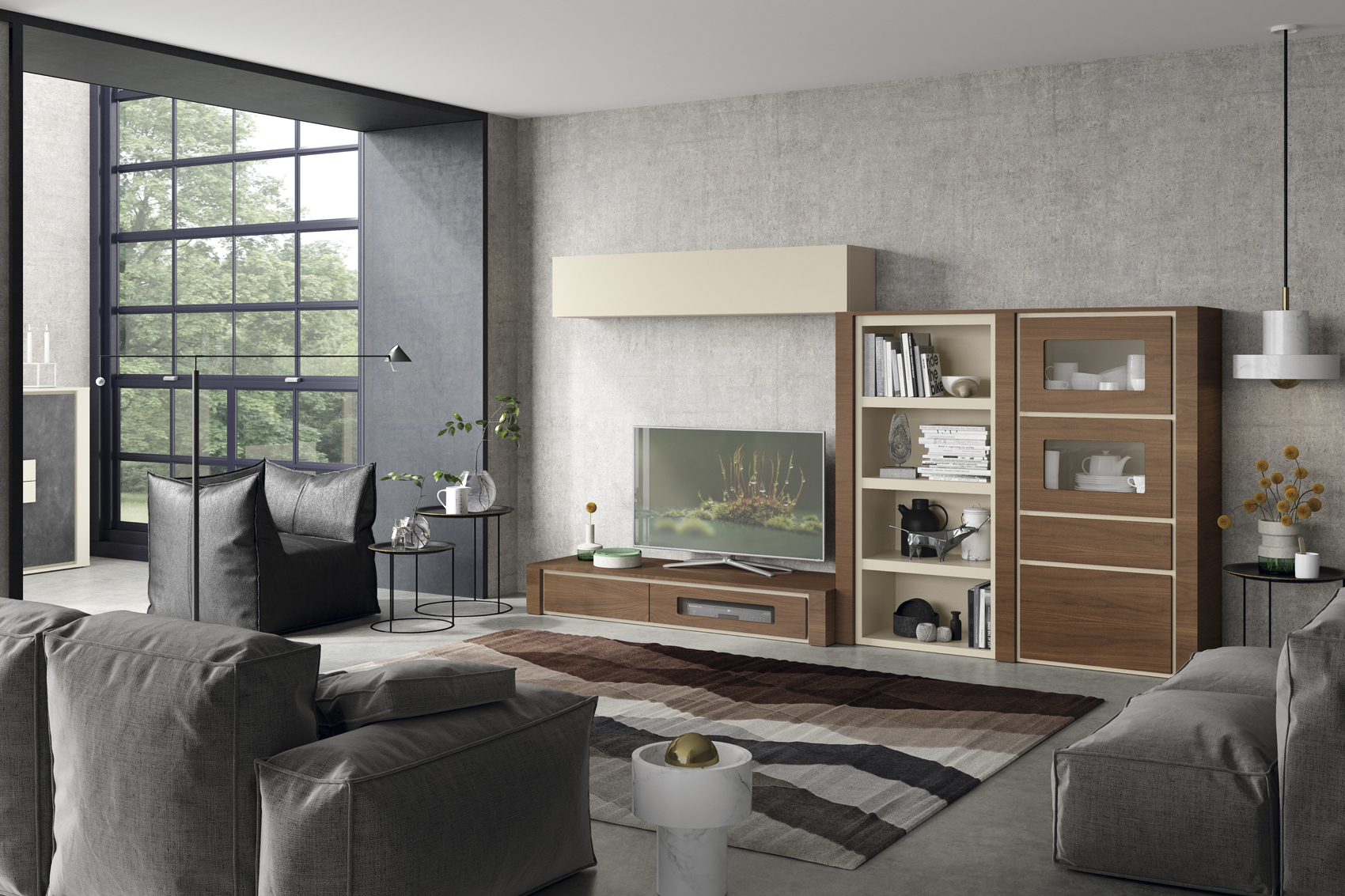 The Composition H5 is an exquisite example of contemporary artistry from the Garcia Laurel & Hardy Wall Units collection. Meticulously crafted in Spain by Garcia Sabate for ESF, this wall unit serves as a sophisticated focal point for any modern living space. The design features a stunning interplay between the Arena mate and Nogal Americano finishes, offering a warm yet minimalist aesthetic that complements high-end interior decor. This piece is not merely furniture but a structural masterpiece that balances the organic texture of American Walnut with a smooth, matte sand-colored surface.