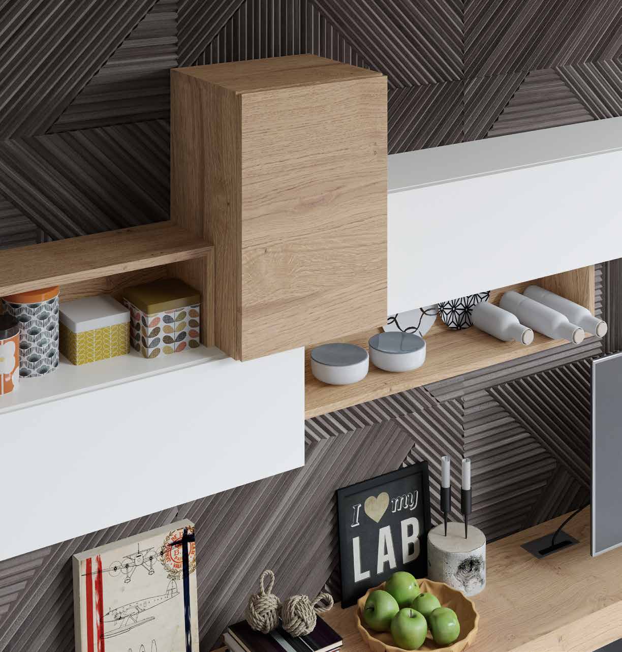The Composition L2 is a masterful centerpiece for any modern home, hailing from the prestigious Garcia Laurel & Hardy Wall Units collection. Expertly manufactured in Spain by Garcia Sabate for ESF, this unit showcases a sophisticated blend of Blanco Mate, Pizarra Porcelánico, and Roble Montana finishes. This unique combination of matte white, porcelain slate, and Montana oak creates a rich, textural aesthetic that elevates the visual appeal of your living space while ensuring long-lasting durability.