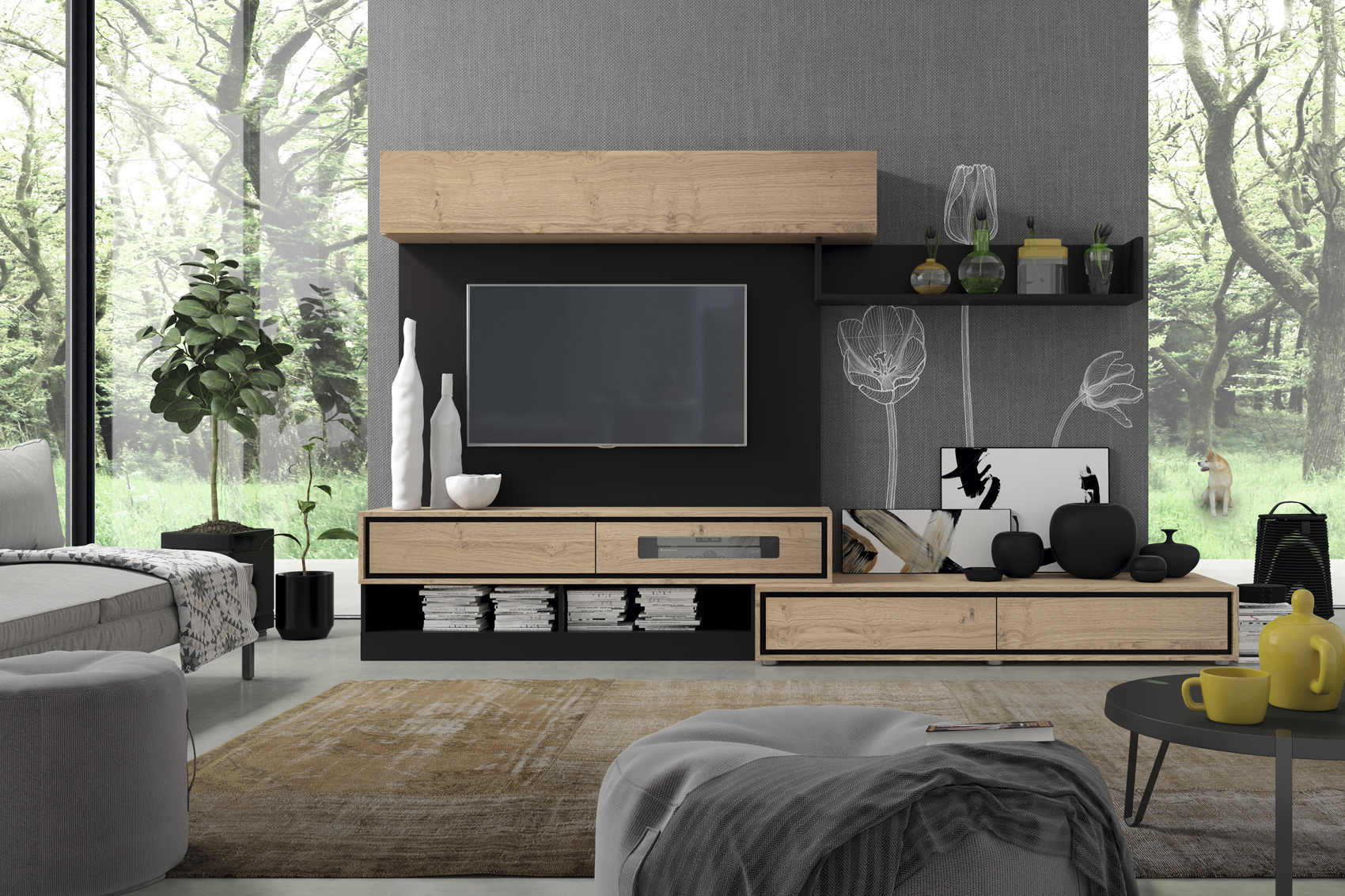 Expertly crafted in Spain, this unit features a striking Pizarra mate and Roble Montana finish that brings a touch of organic warmth to modern design. As a standout piece in the Garcia Laurel & Hardy Wall Units category, it embodies the perfect marriage of form and function. Whether you are anchoring a dedicated media room or enhancing a minimalist living space, the Composition L81 provides a refined foundation that speaks to a high-end aesthetic.
