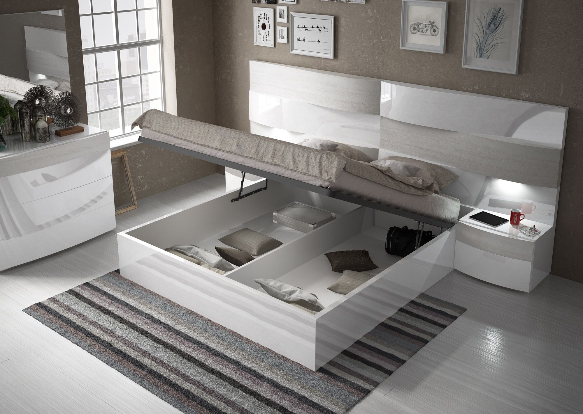 Expertly crafted from premium wood veneer and MDF, the Cordoba QS Bed is finished in a luminous White High Gloss and Natural Oak White Decapé. This glamorous high-end finish not only reflects light to brighten your space but also adds a clean, contemporary feel to your decor. For those seeking both form and function, optional storage is available to help maintain a clutter-free environment without sacrificing style.