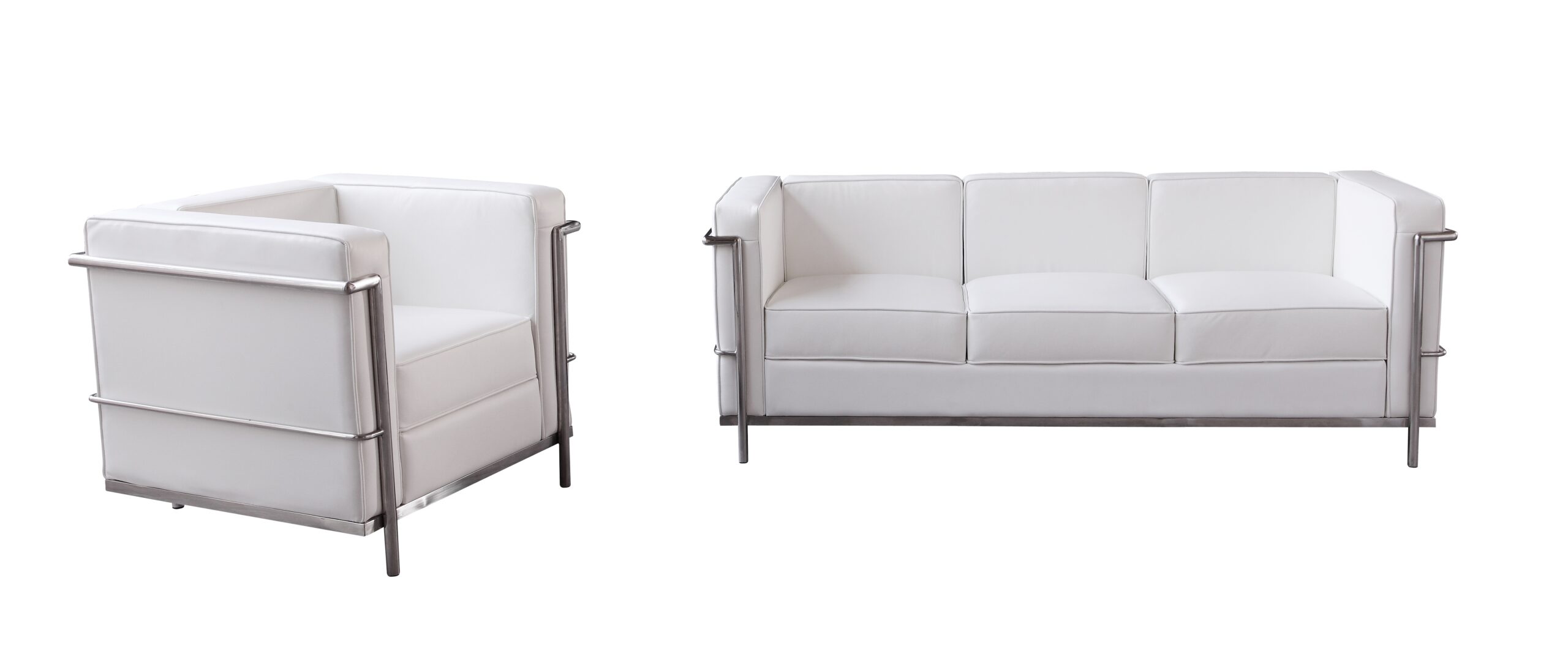 Soft padded seating for added comfort Top grain Italian leather Stainless steel frame Available in sofa and chair. Available in a white color.