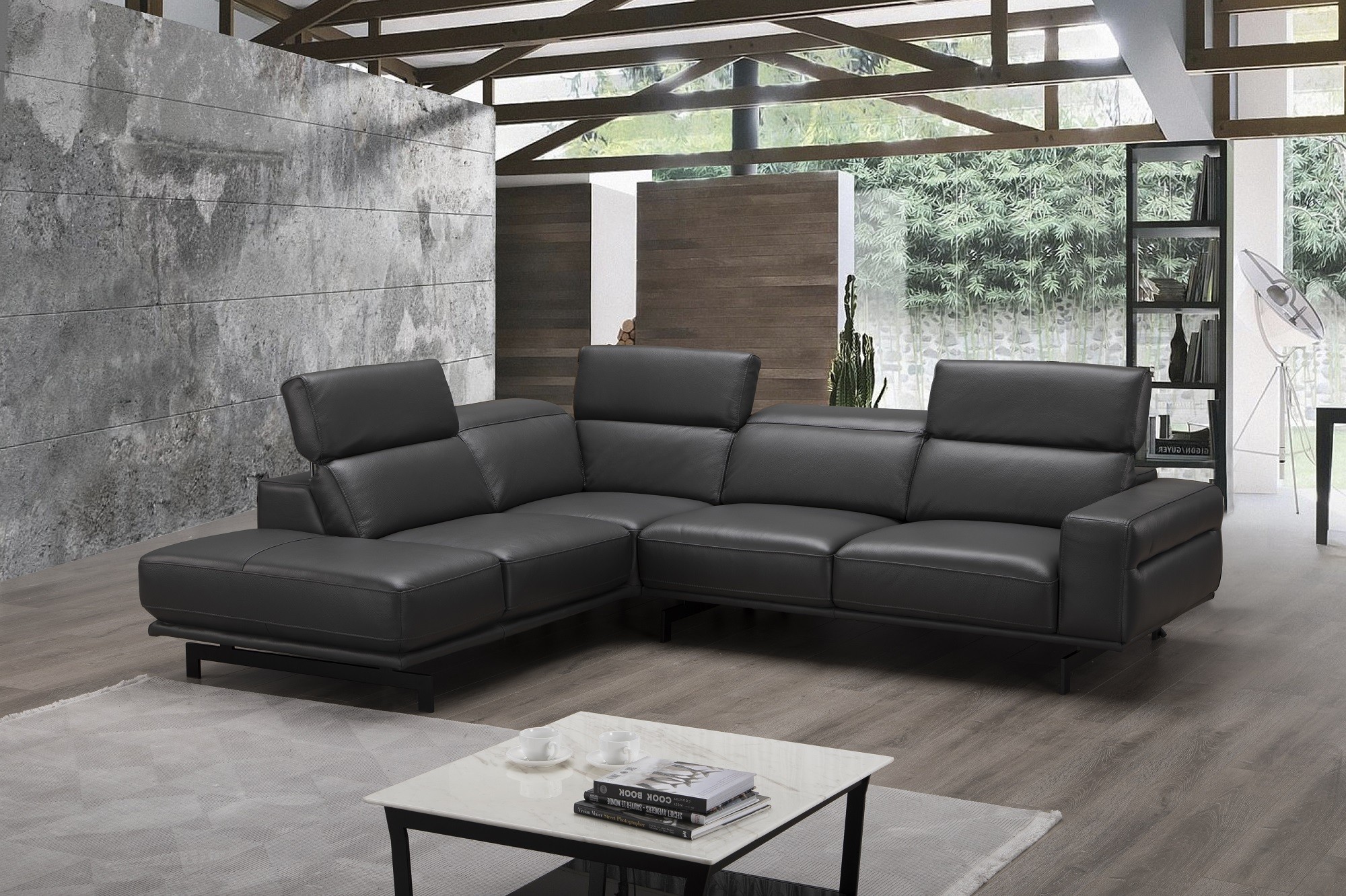 J&M is proud to present our newest innovation in the sectional category.The Davenport premium leather sectional is designed to maximize both comfort and flexibility. The Davenport can be used as a standard sectional or can be converted into a twin-size bed with the touch of a button Upholstered in top grain leather all around, and supported by a gunmetal grey legs,this sectional is designed to accommodate any decor. Stocked in Slate Grey, Element Grey, as well as a bold Snow White.