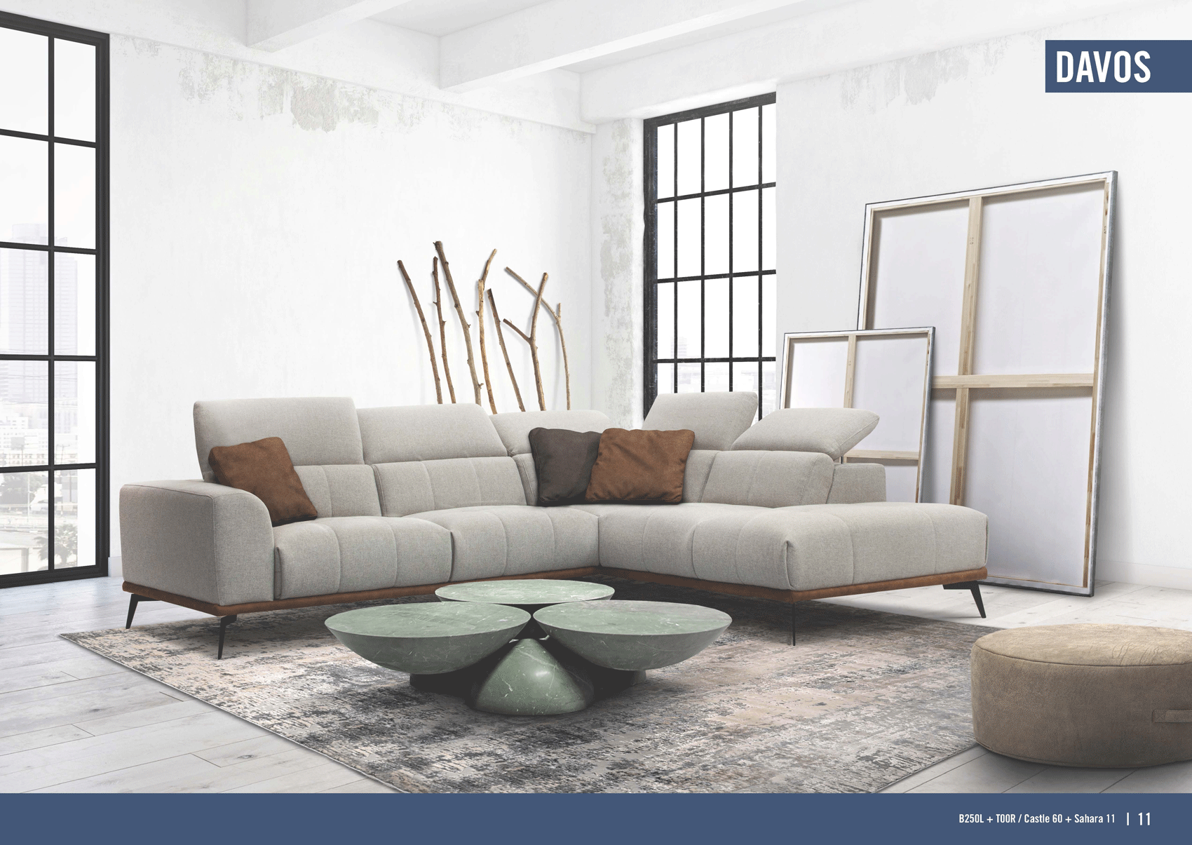 Crafted with meticulous attention to detail, this sectional features a specific configuration of B250L + T00R, finished in the elegant Castle 60 and Sahara 11 tones. Utilizing special order materials, the Davos Sectional is built to withstand the rigors of daily life while maintaining its high-end appeal. Whether you are hosting a lively gathering or enjoying a quiet evening, this piece provides the ultimate backdrop for relaxation. Elevate your interior design with this versatile module, where Polish craftsmanship meets the highest standards of quality and artistic flair.