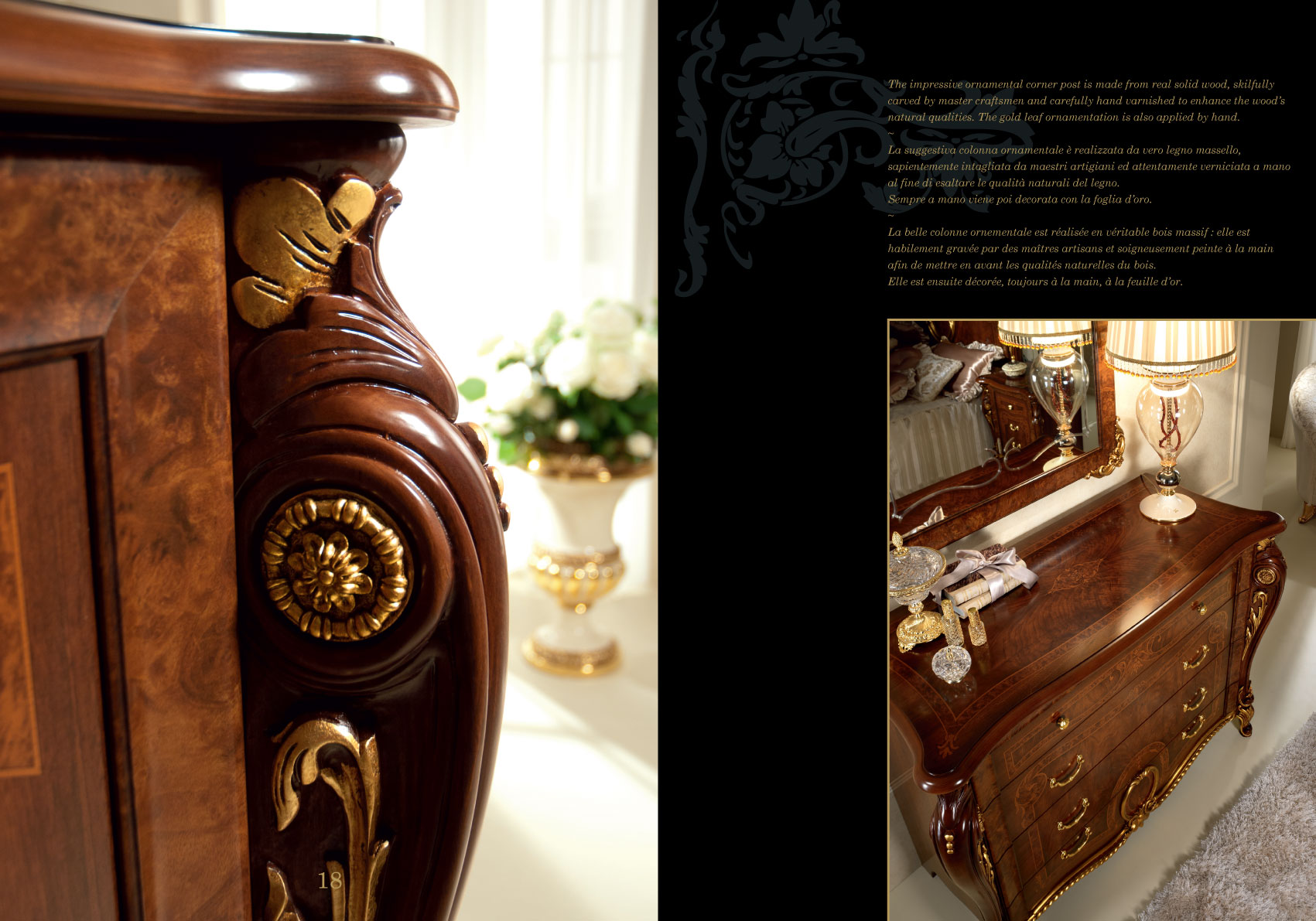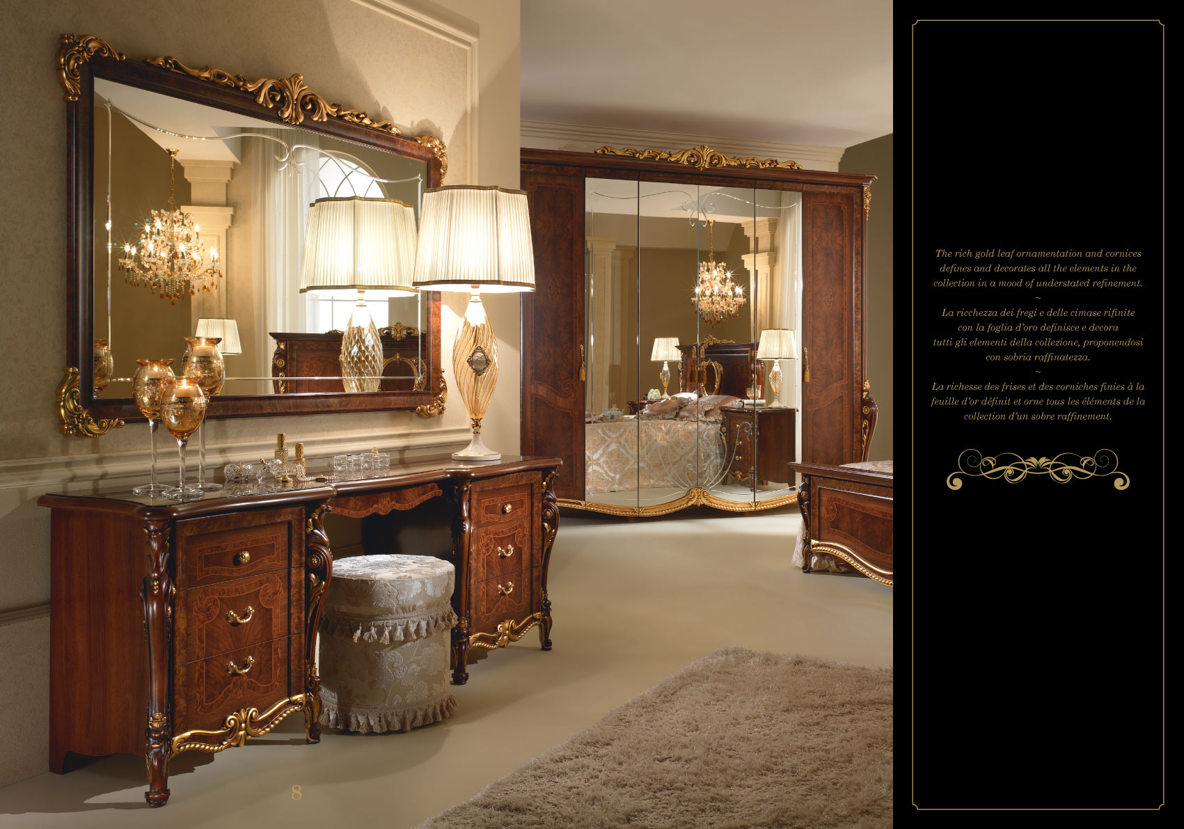 The Donatello Night Bedroom is designed for those who appreciate the finer things. Key features include intricate neo-classic motifs and a cohesive design language that unifies the entire suite. Whether you are furnishing a grand estate or a refined urban home, this set delivers a majestic atmosphere. Elevate your interior with this masterpiece of European design, where every detail is a testament to the storied heritage of Arredoclassic Italy.