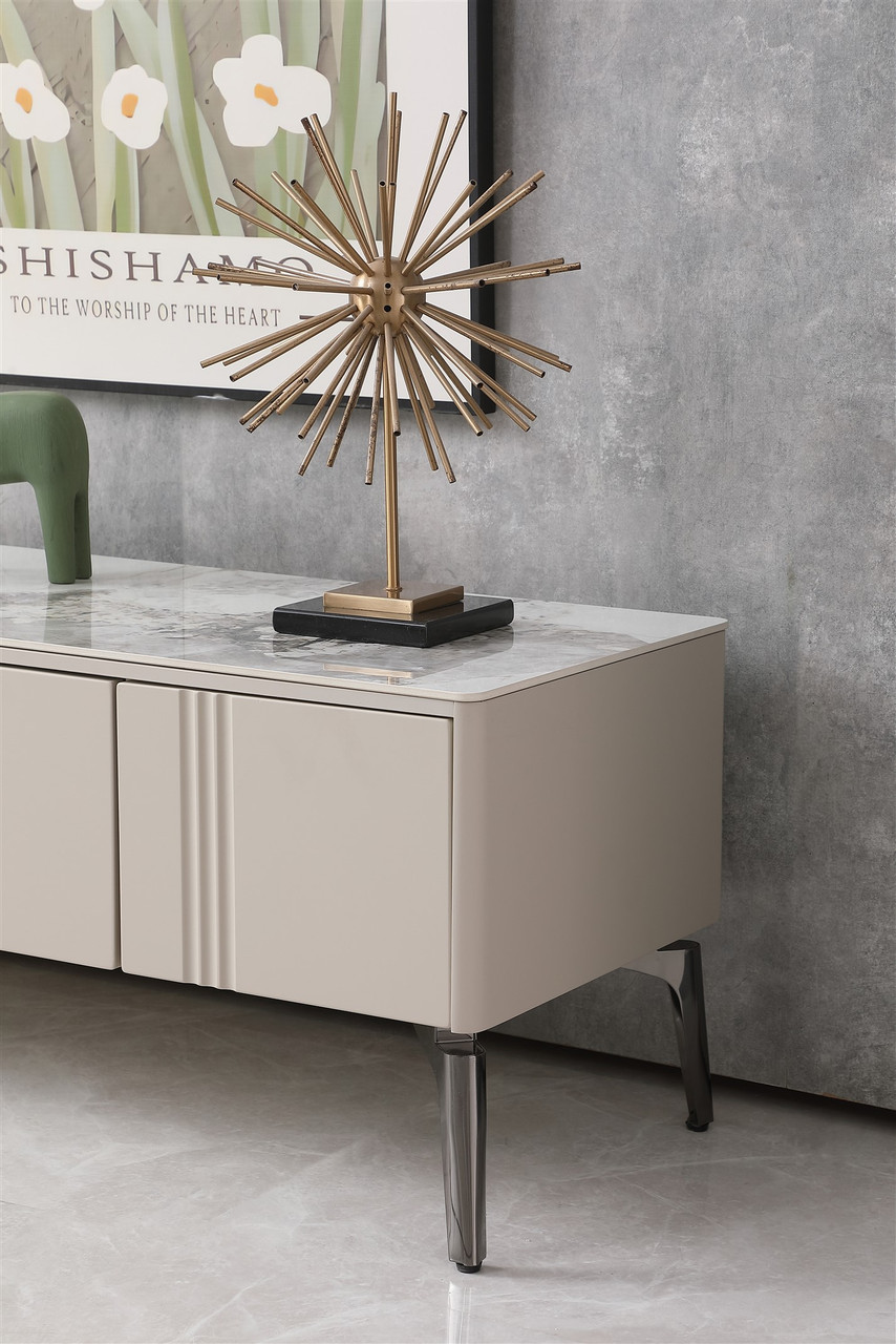 2203B TV Sideboard with Drawers and Storage and Marble Style Porcelain Top 79 x 16 x 17