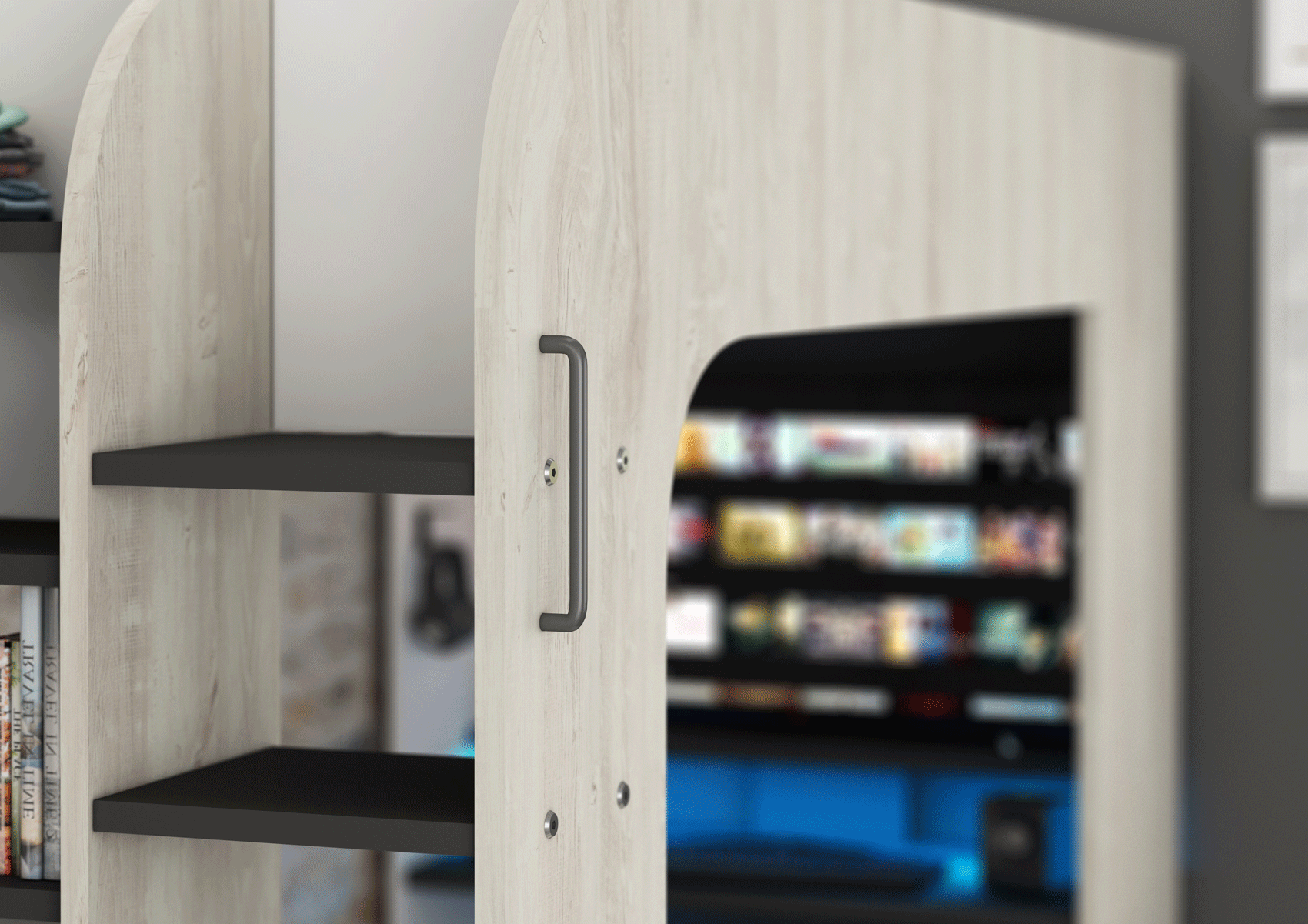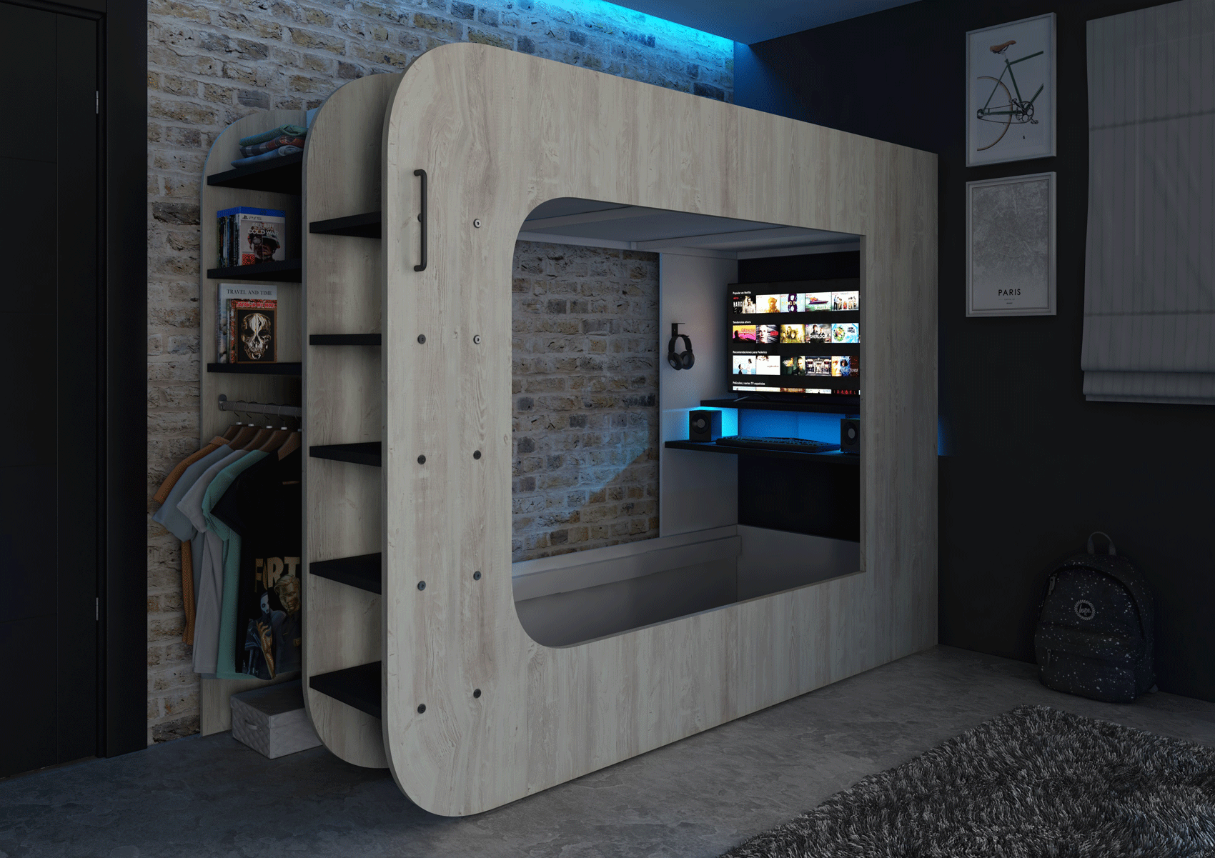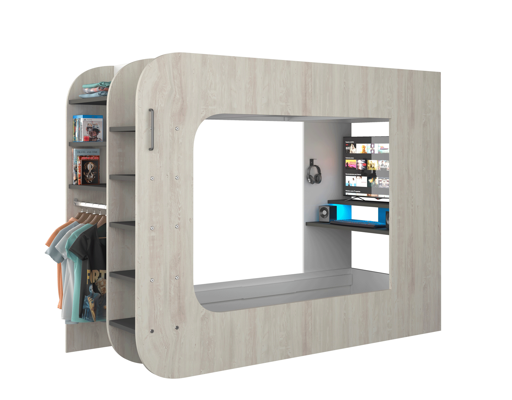 Crafted with precision in Spain, the Gamer Bed 35.43″ x 78.7″ Natural Color is the ultimate centerpiece for any modern Bedroom Furniture > Full Size Kids Bedrooms. This sturdy sleep station is expertly constructed from high-quality wood veneer and MDF, ensuring it stands up to years of intense gaming sessions and restful nights. Its natural wood finish brings a warm, contemporary aesthetic that seamlessly blends into any young enthusiast’s personal sanctuary.