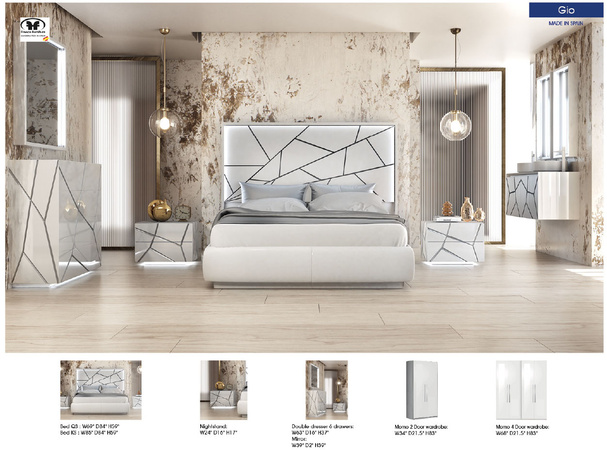 Transform your sleep sanctuary into a high-end retreat with this exquisite selection of Modern Bedrooms QS and KS. Every detail of the Gio Bedroom is designed for impact, from the integrated LED lighting on the headboard and cases to the elegant silver lines that provide a polished, upscale aesthetic. Built with premium wood veneer and MDF, these pieces offer a durable yet luxurious foundation for your daily life.