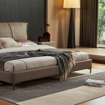 Grace Queen Leather Bed in FSB010 Smoke