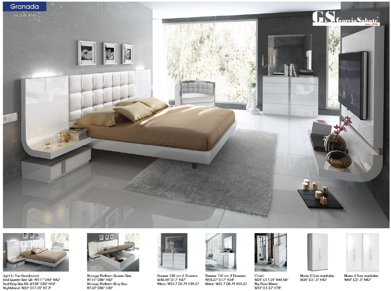 Elevate your sanctuary with the Granada Storage KS bed, a masterpiece of Spanish craftsmanship from the Garcia Sabate Spain by ESF collection. Expertly constructed from high-quality wood veneer and MDF, this piece is a cornerstone of our Bedroom Clearance selection. The design is defined by a striking combination of White High Gloss and Arena High Gloss finishes, beautifully accented by Fabric Elfos Blanco on the headboard wings.