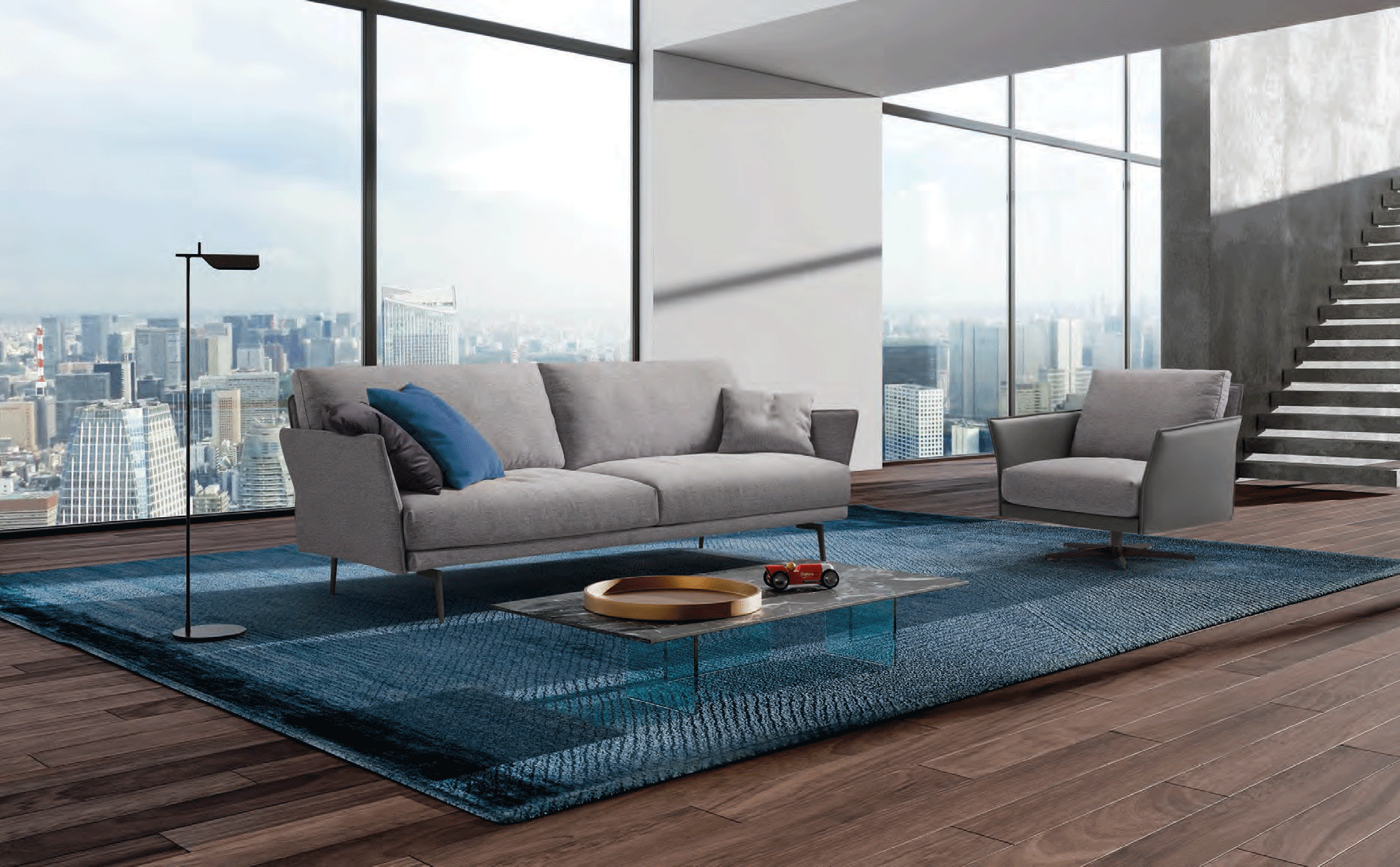 Supple and generous lines define the silhouette of this sofa, which is thoughtfully upholstered with a luxurious Top-grain Leather front and a practical Eco Leather back. For those seeking a personalized touch, it is also available in various fabric options and special order materials to perfectly match your interior vision. Every detail demonstrates the creative inspiration and skill of Italian craftsmen who honor tradition while embracing modern style.