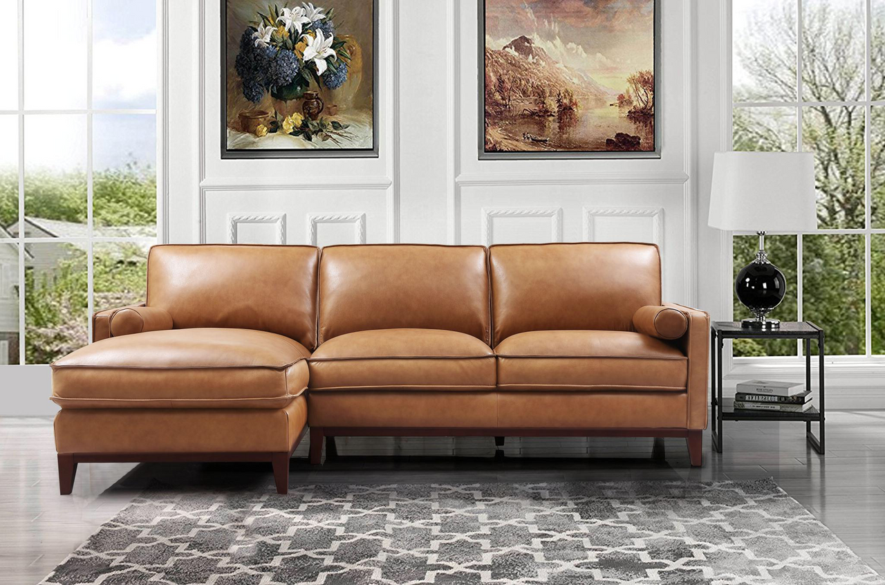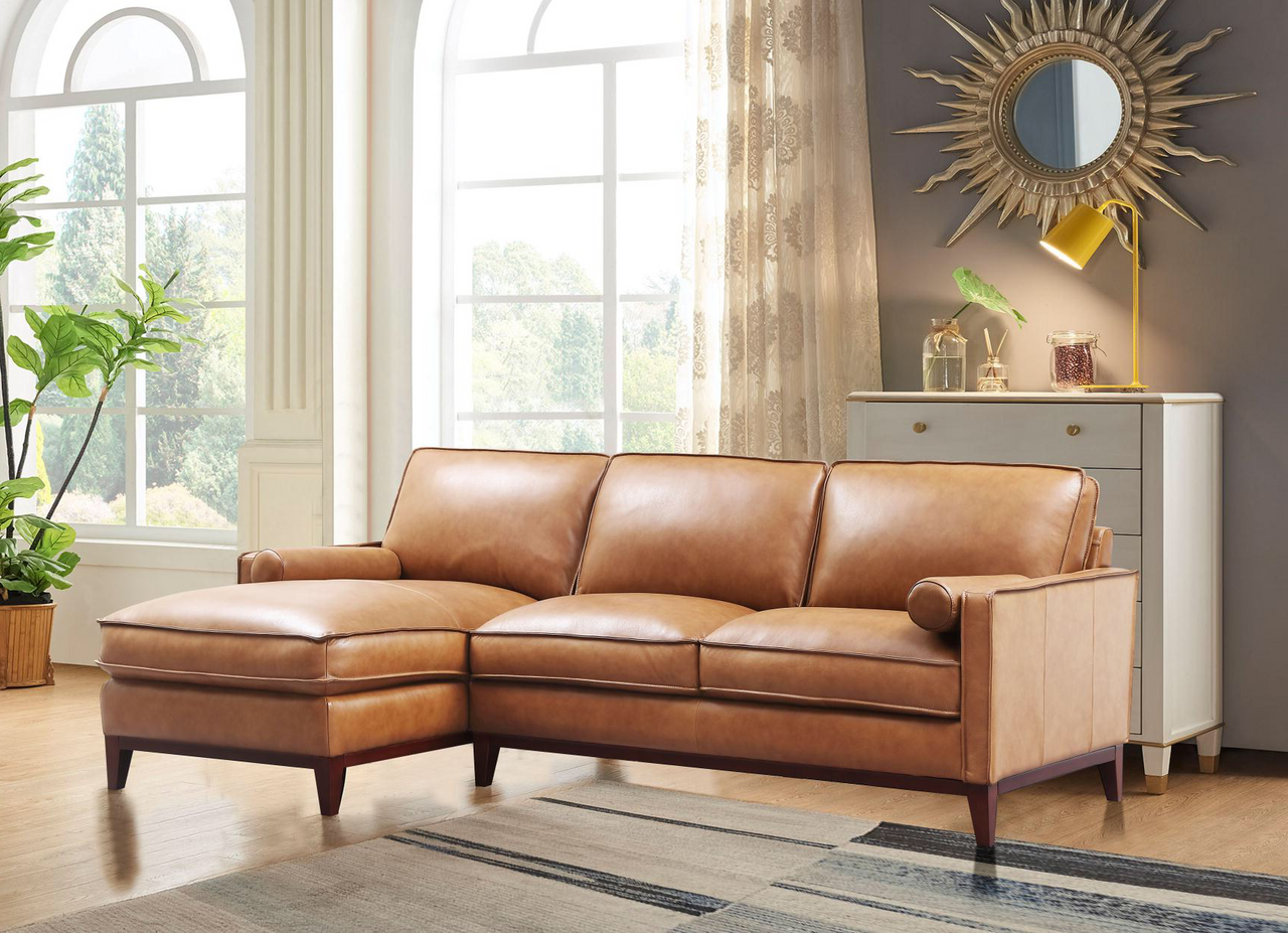6394ANG Harper Sectional with LHF Chaise in Cat.2A 177137 Saddle Color Leather/Split 101×37/60×36