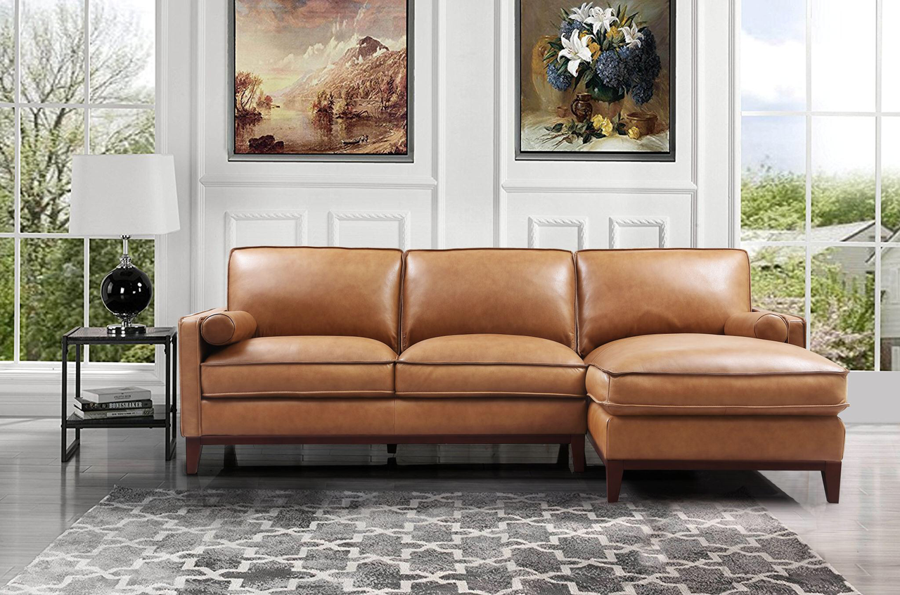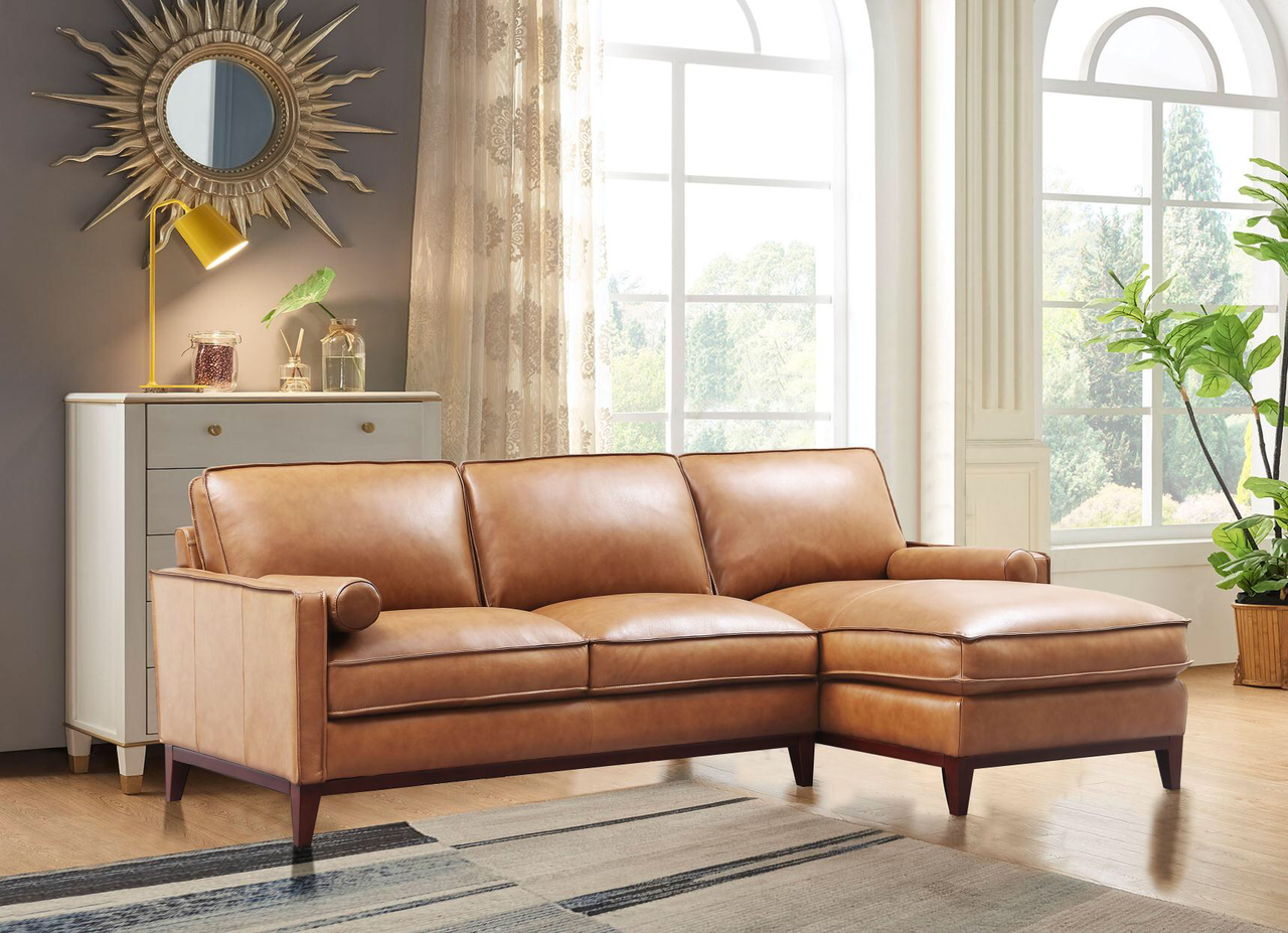 6394ANG Harper Sectional with RHF Chaise in Cat.2A 177137 Saddle Color Leather/Split 101×37/60×36