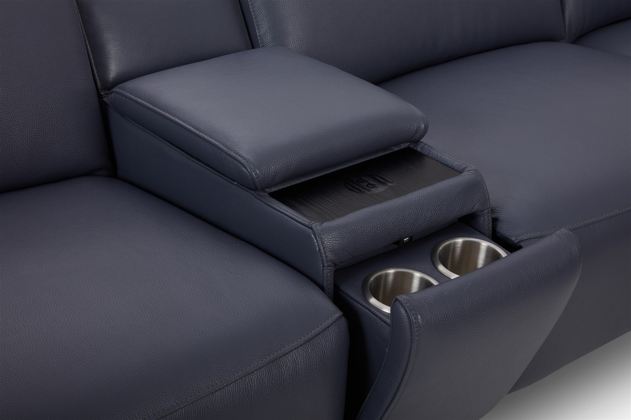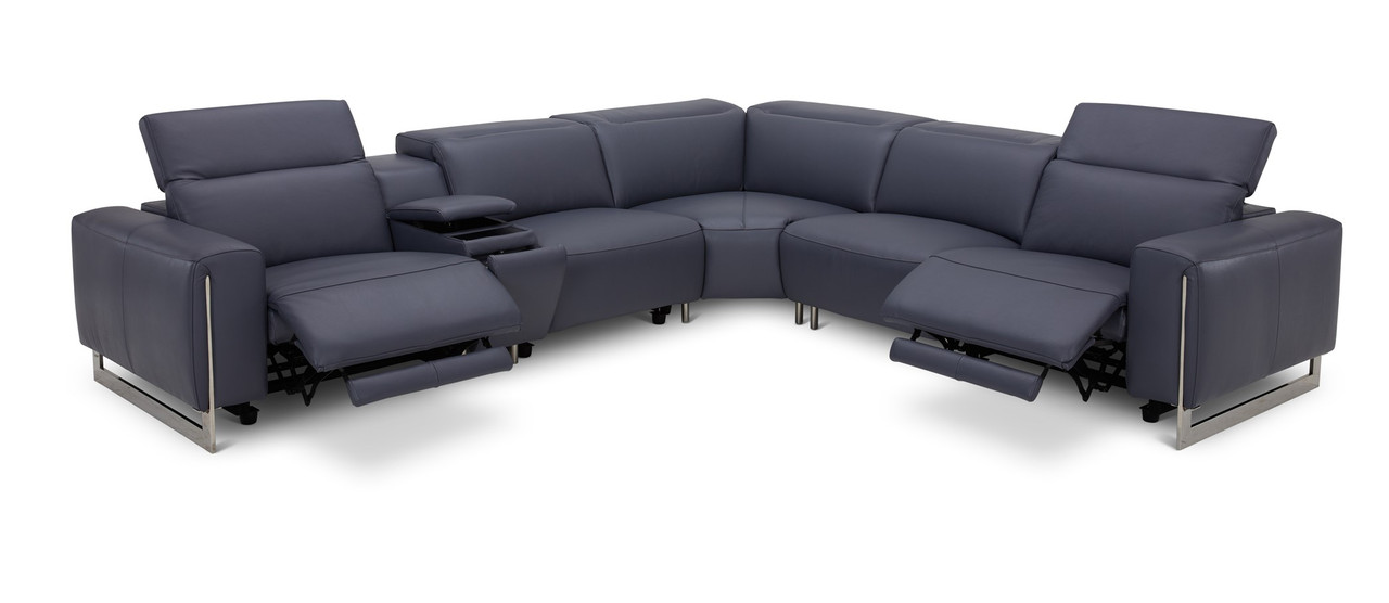 6-piece sectional in NL5100/Split Slate Blue with three power recliners LAF(E)+Console (E)+Armless(E)+Corner+Armless +RAF