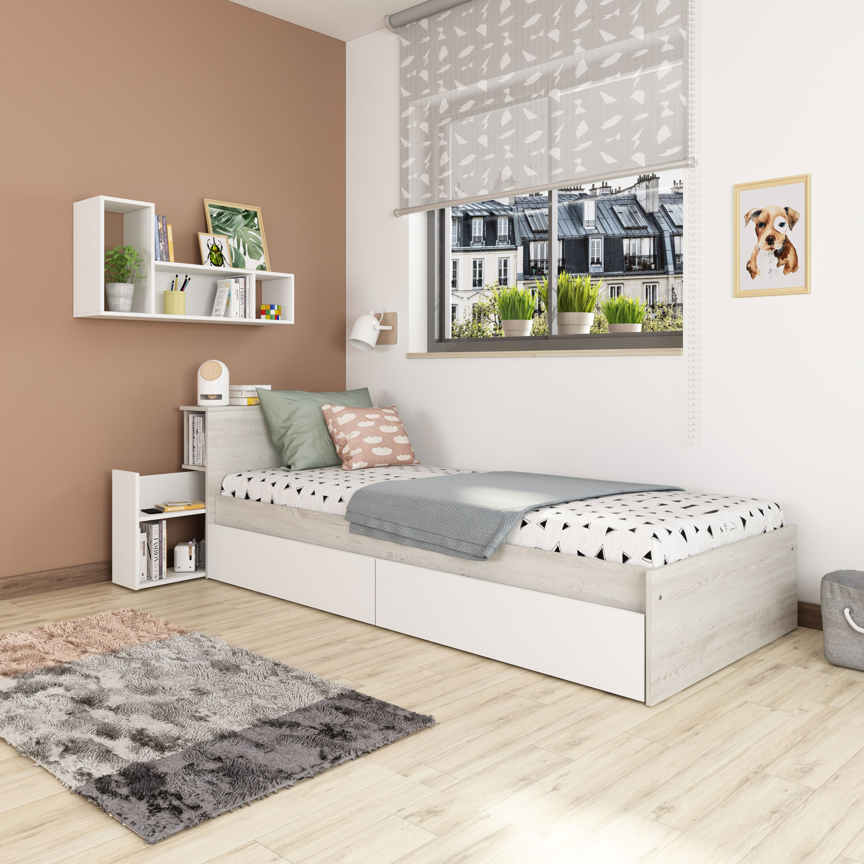 Elevate your child’s personal sanctuary with the Jazz Kids Bedroom Oak White, a stunning example of modern design from the Transman Kids Spain by ESF collection. Expertly crafted in Spain, this furniture set utilizes premium wood veneer and MDF to ensure long-lasting durability and a sophisticated aesthetic. The beautiful Oak White finish brings a bright, airy feel to the room, creating a versatile backdrop that grows with your child from toddlerhood through their teenage years.